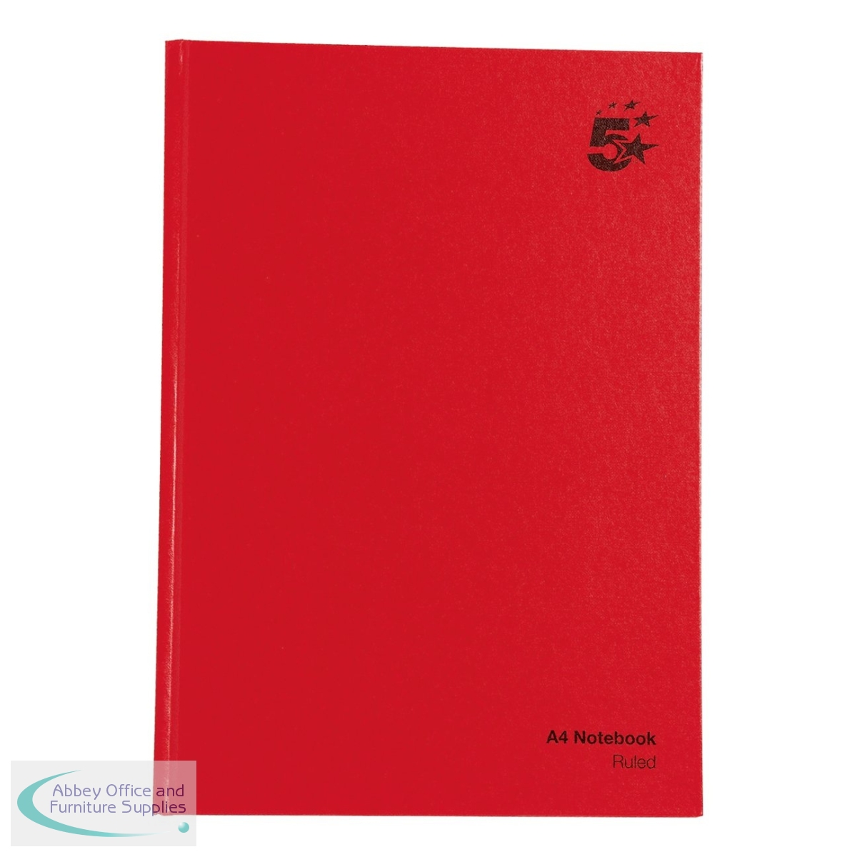 FS912874 - 5 Star Office Manuscript Notebook Casebound 70gsm Ruled 192pp A4 Red (Pack of 5)