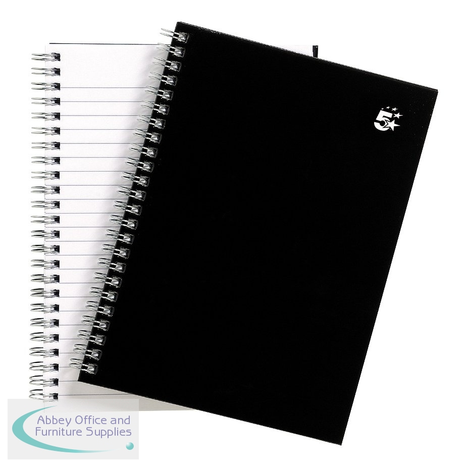 FS930272 - 5 Star Office Notebook Wirebound 80gsm Ruled 140pp A5 Black (Pack of 5)