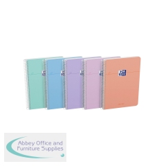 The Oxford Smart A5 wire bound notebook is perfect for all note-taking needs. Featuring a scratch-resistant, matte laminated, soft card cover to protect notes and a rigid backboard which is perfect for writing standing up, even without a desk or a table. Containing 160 pages of smooth white Optik Paper which can be written on both sides of the page. It is also Scribzee enabled so by using the Oxford Scribzee app, you can scan, save and share your notes. The detachable micro-perforated sheets are perfect for removing pages quickly and easily. The pages are printed with 7mm ruled lines with 4 holes for easy insertion into a binder. Supplied in a pack of 5 in assorted pastels.