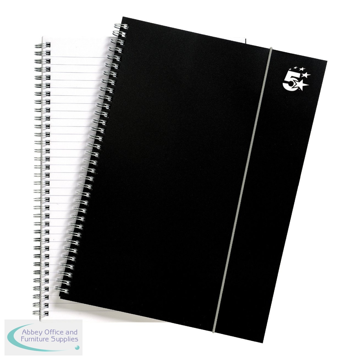 5 Star Office notebooks are available in a variety of sizes and formats. The smart and professional range has a black cover and bright white paper is ideal for making notes, planning events and recording ideas.