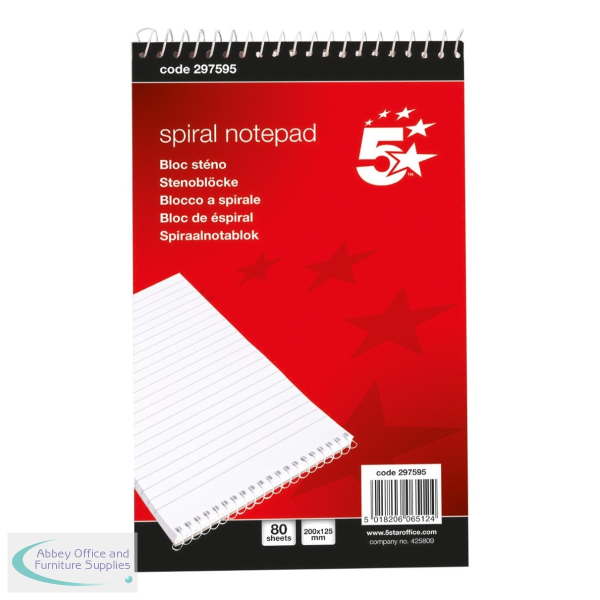 [ 5 Star; Books, Pads & Albums; Spiral Note Books; 8x5in; OEM Code 297595; EAN 05018206278302; VOW Code FS297595 ]