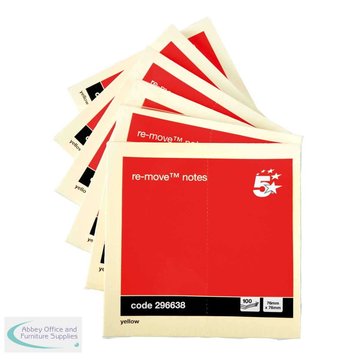 FS296638 - 5 Star Office Re-Move Notes Repositionable Pad of 100 Sheets 76x76mm Yellow (Pack of 12)