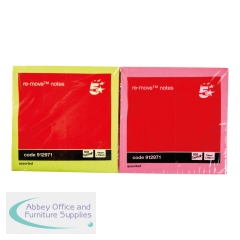 FS912971 - 5 Star Office Re-Move Notes Repositionable Neon Pad of 100 Sheets 76x76mm Assorted (Pack of 12)