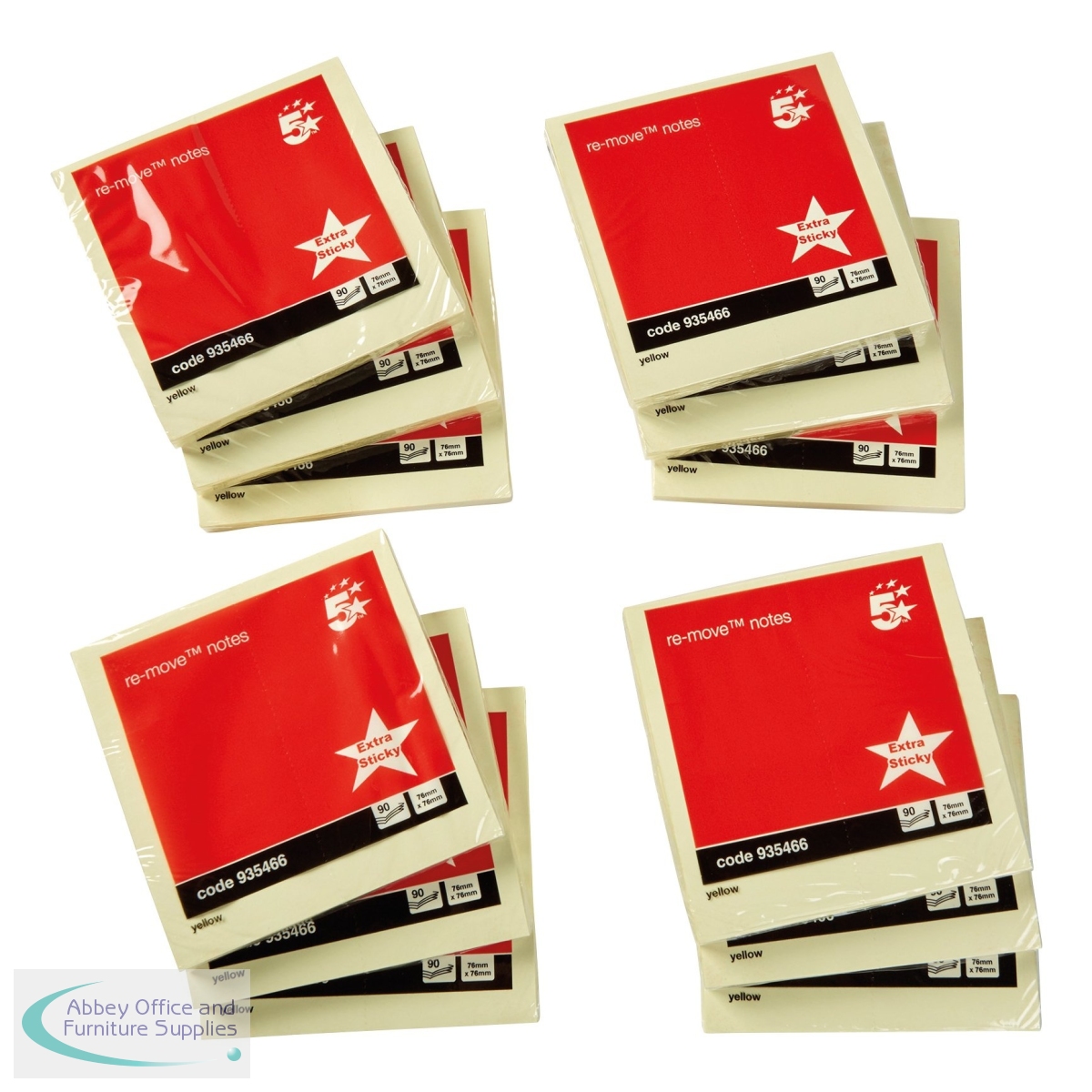 FS935466 - 5 Star Sticky Notes Removable Yellow 76x76mm (Pack of 12) 935466