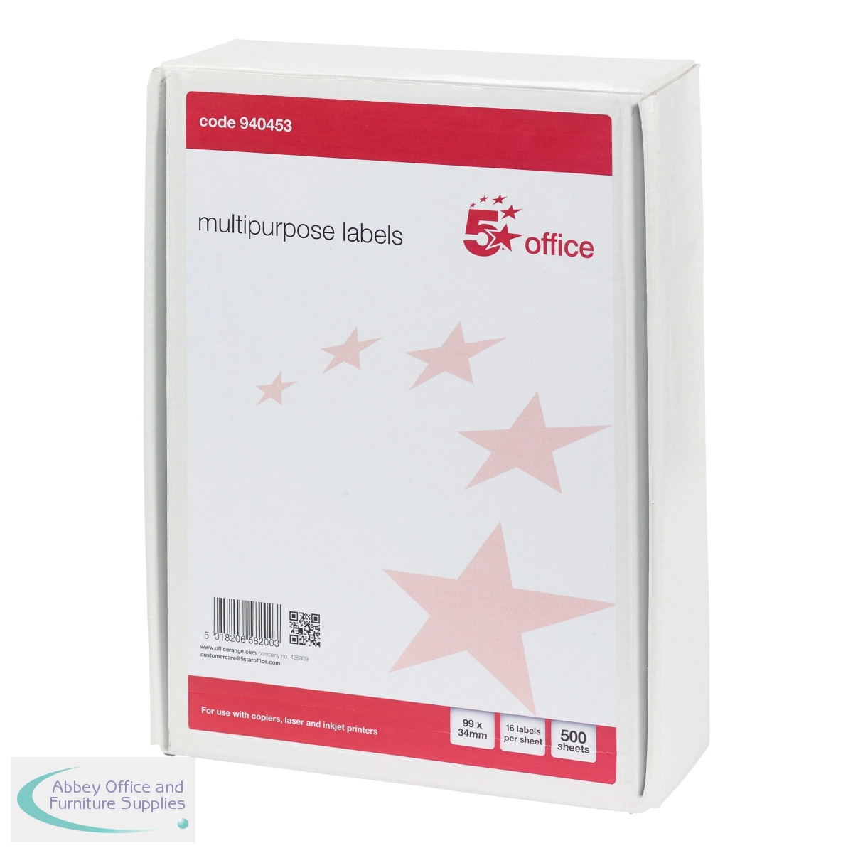FS940453 - 5 Star Office Multipurpose Labels Laser Copier Inkjet 99x34mm White (Pack of 8000)