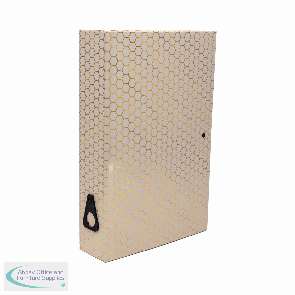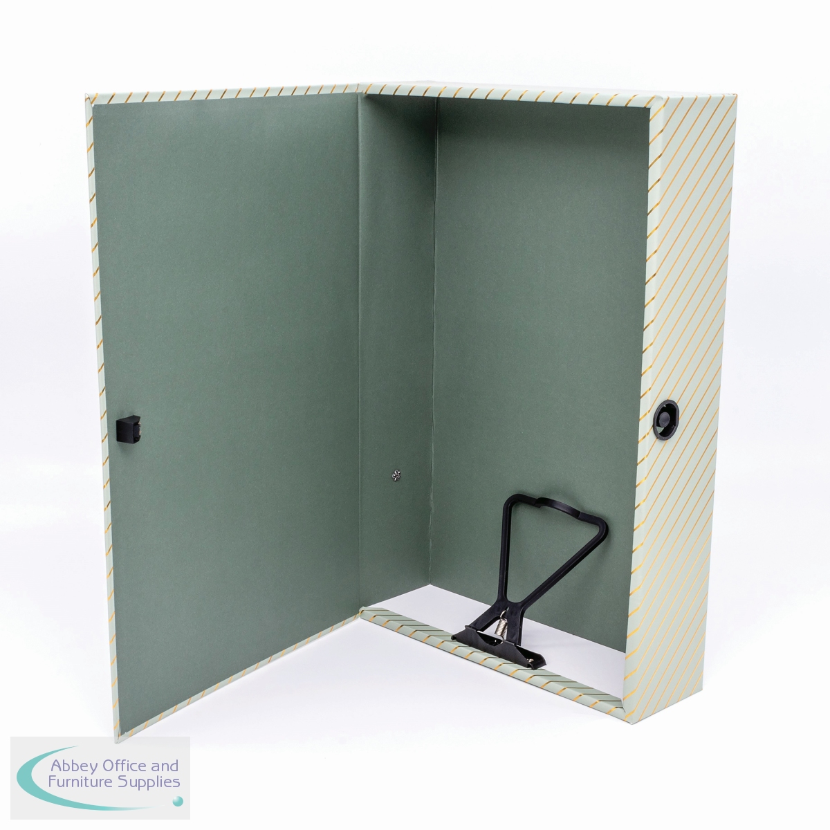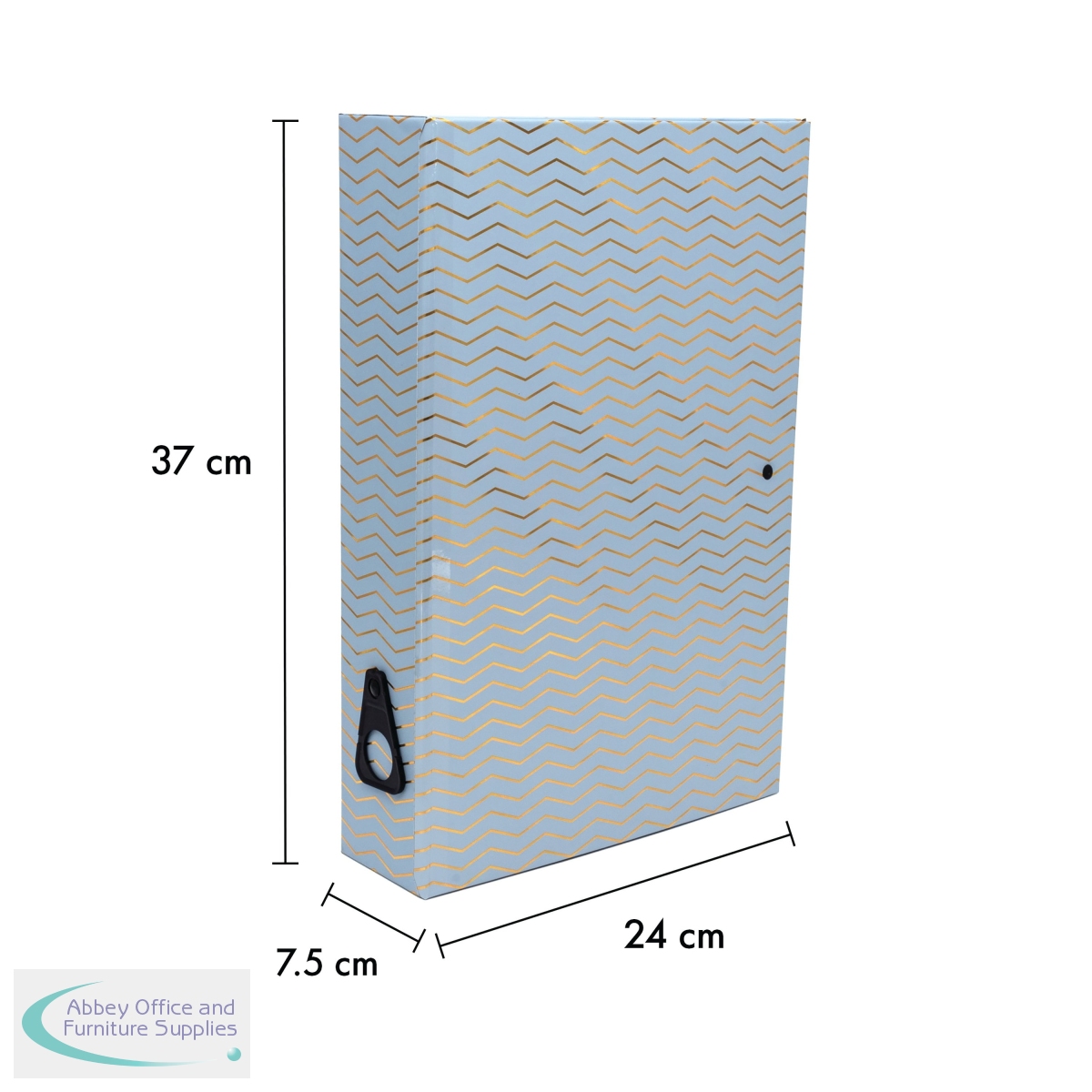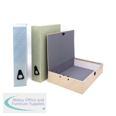 The elegant range of hot foil stationery, Haze, combines style and functionality. The Pukka Pads Haze box files are an ideal solution for those seeking to organise their home or workspace. The box files are thoughtfully designed, featuring a practical securing arm, which ensures that documents and other items stay neatly in place. With a foolscap size measuring 240mm x 370mm x 75mm, the files generously accommodate A4 documents, offering space for up to 500 sheets of paper. The Haze box files are not just functional, but they are also visually appealing too, with coordinating inner linings and hot foil details, adding a touch of sophistication. The calm hues are great for both personal and professional use and are sold in an assorted pack of 3, in blue, green and taupe.