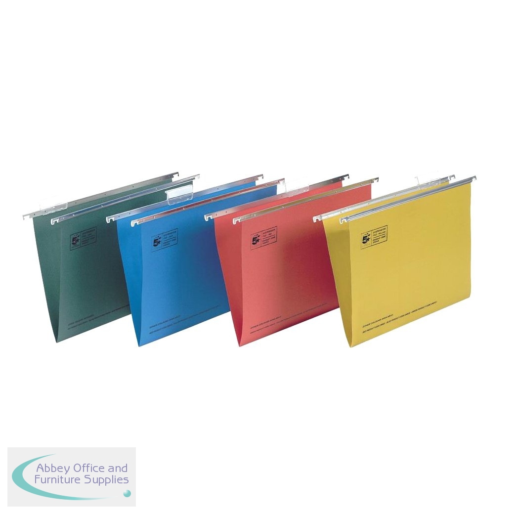5 Star Office is a competitive range of office stationery. Made from over 50% recycled manilla these suspension files are ideal for organising documents in the home or office. Brightly coloured design is ideal for colour-coded filing systems, with durable bar design. Supplied with tabs and inserts which are snap proof and easy to fit. This file provides everything you need to create an professional filing system.