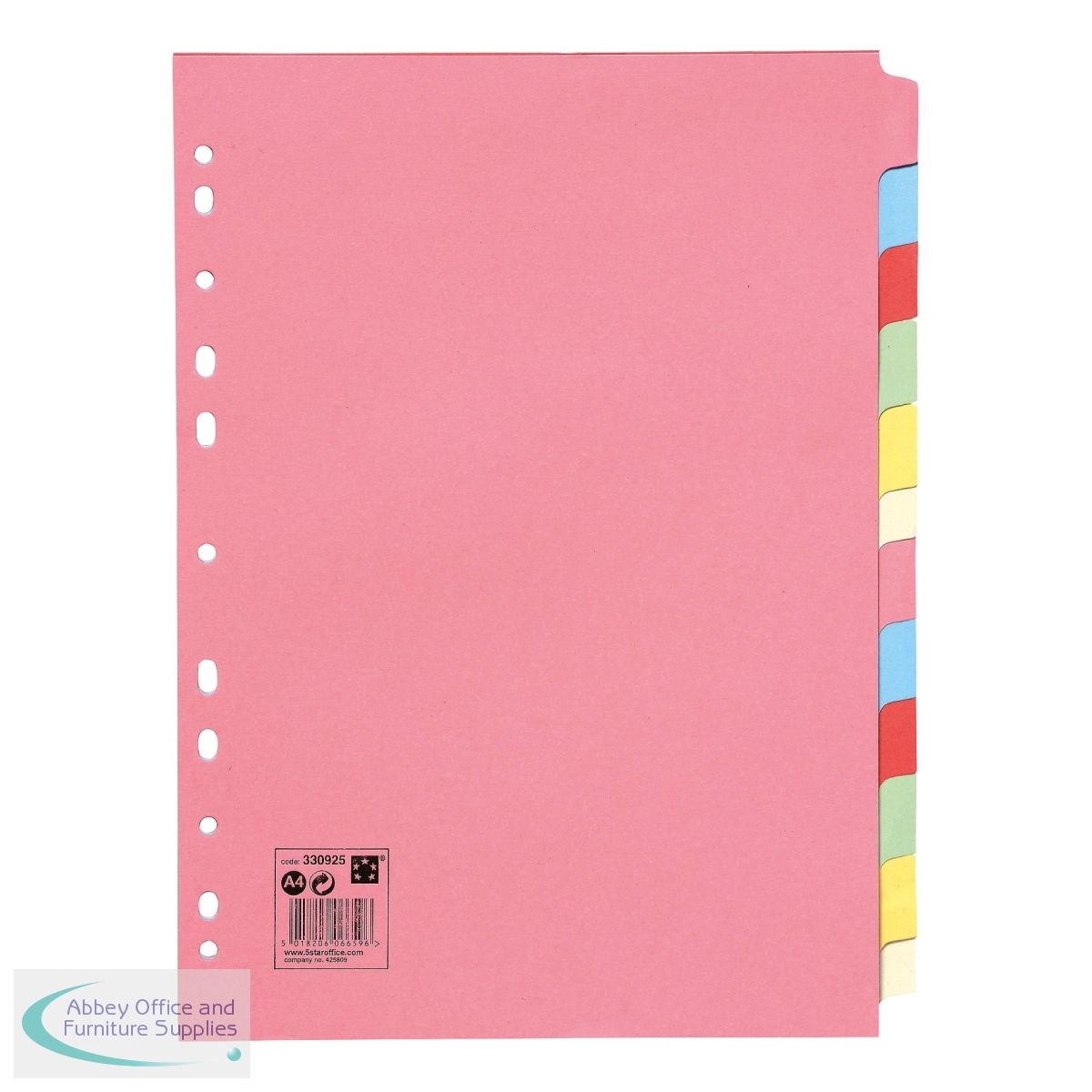 5 Star Office is a competitive range of office stationery. These 12-part file dividers are a high quality option made from 100% recycled material. The brightly coloured tabs help separate sheets and documents. File dividers are a convenient way of keeping track of your documents when you have them stored in folders. 5 Star Office A4 file dividers provides a professional filing solution for your everyday office needs. Suitable for all lever arch files and ring binder folders.
