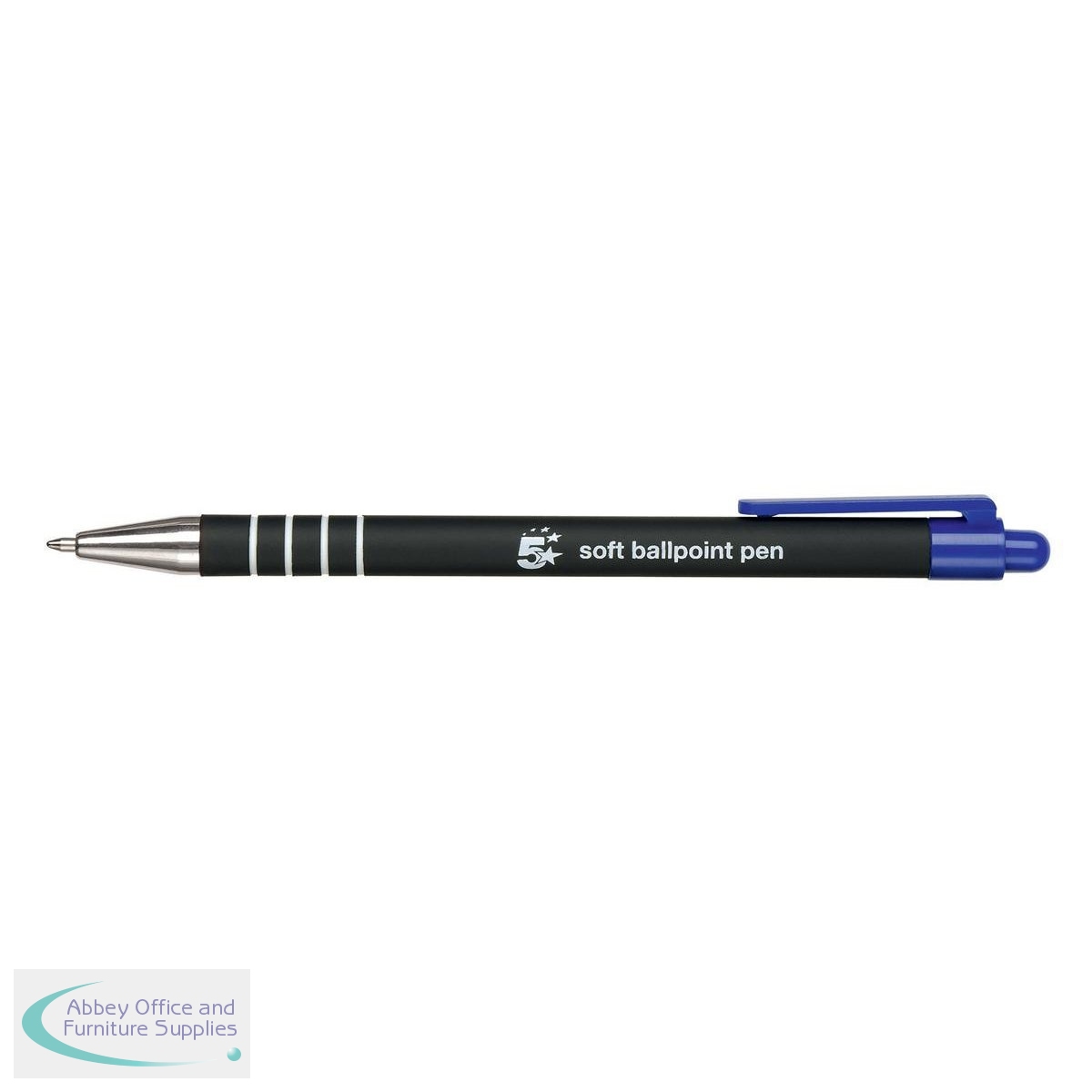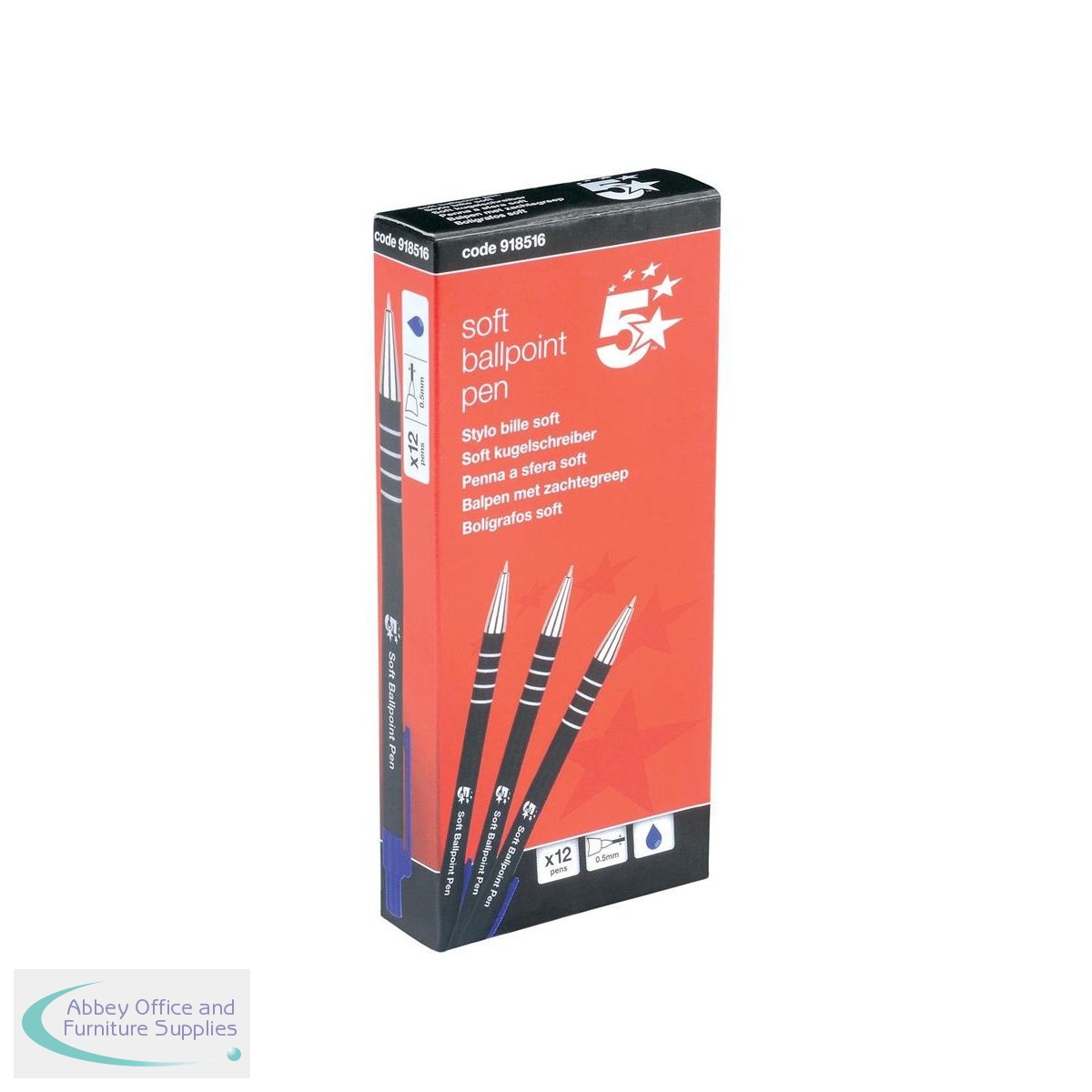 FS918516 - 5 Star Office Retractable Ball Pen Soft Grip Medium 1mm Tip 0.5mm Line Blue (Pack of 12)