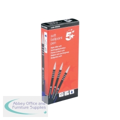 5 Star Office Retractable Soft ball pens are designed for high quality writing, suitable for offices, schools and home writing. Smooth flowing long lasting ink means they can be used for archival material without fading. Manufactured with a silver nickel tip and tungsten carbide ball. Stylish soft rubber black barrel with white gripping rings, clip and retractable top are colour coded to match the ink.