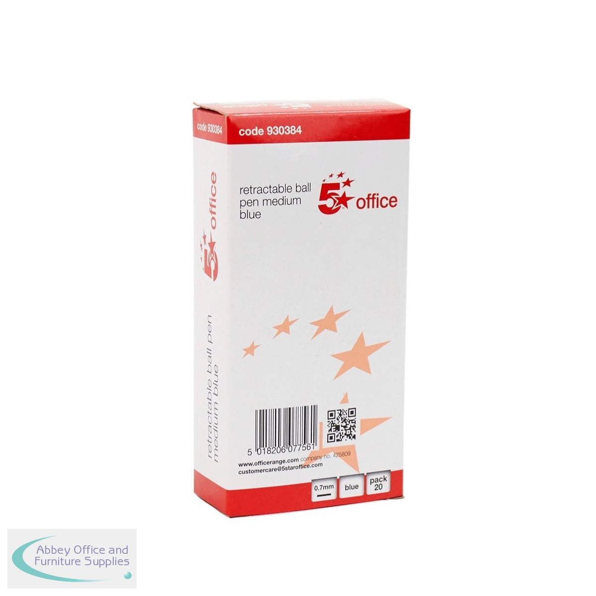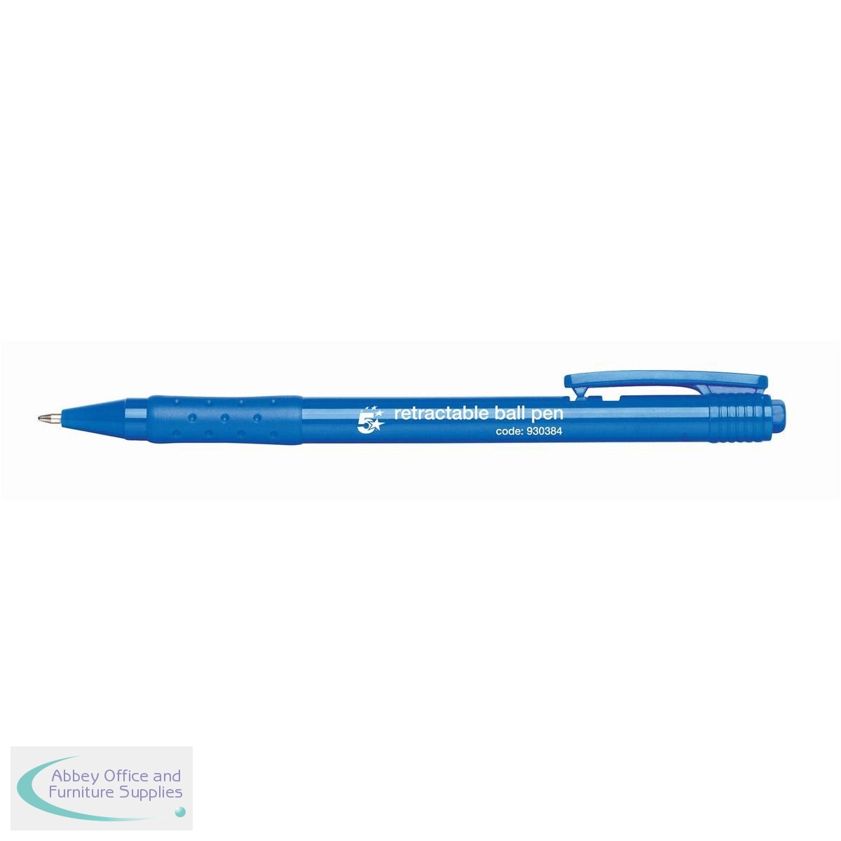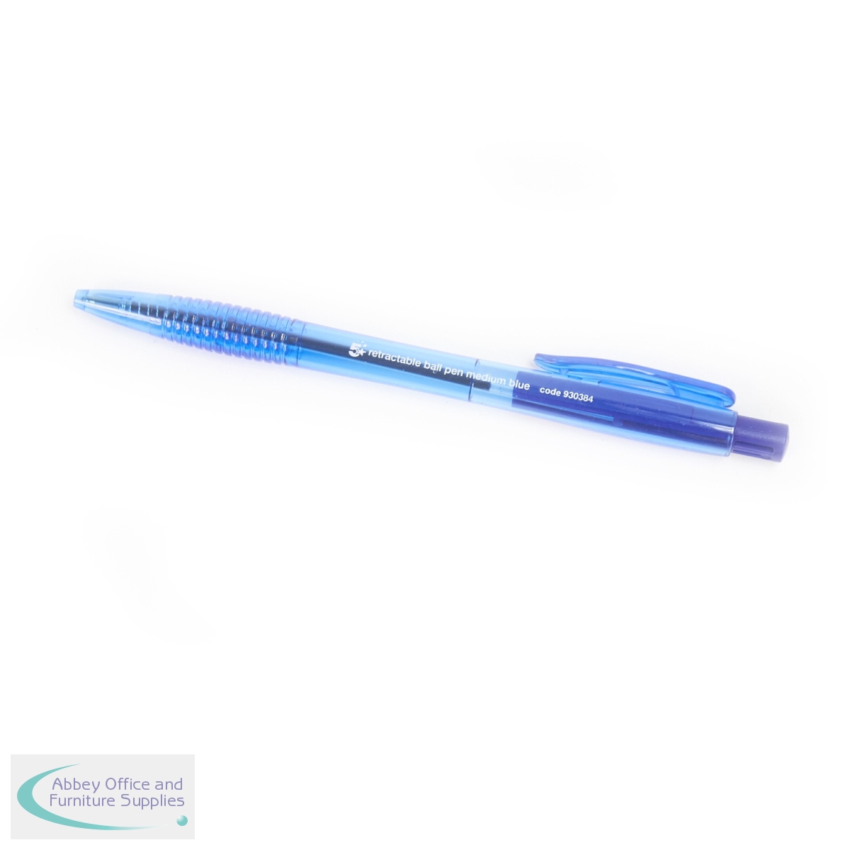 FS930384 - 5 Star Office Retractable Ball Pen Medium 1.0mm Tip 0.7mm Line Blue (Pack of 20)