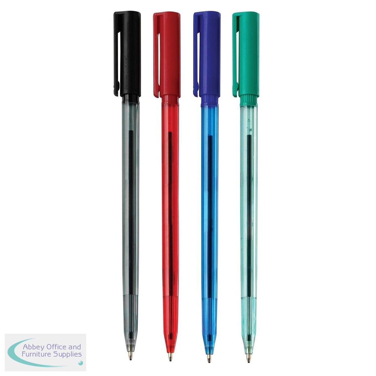 5 Star Ballpoint pens are manufactured from high quality tinted shatterproof plastic with a silver nickel tip and tungsten ball. Smooth long lasting oil-based ink means that they are ideal for archival material giving fade resistance. Suitable for office, school and home writing. Complete with ventilated caps for additional safety.