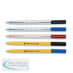 5 Star Office ball pens are designed for high quality writing, suitable for offices, schools and home writing. Smooth flowing long lasting ink means they can be used for archival material without fading. All complete with ventilated caps for additional safety and cap colour denotes the colour of the ink. Available in a clear for medium or yellow for fine hexagonal designed barrels.