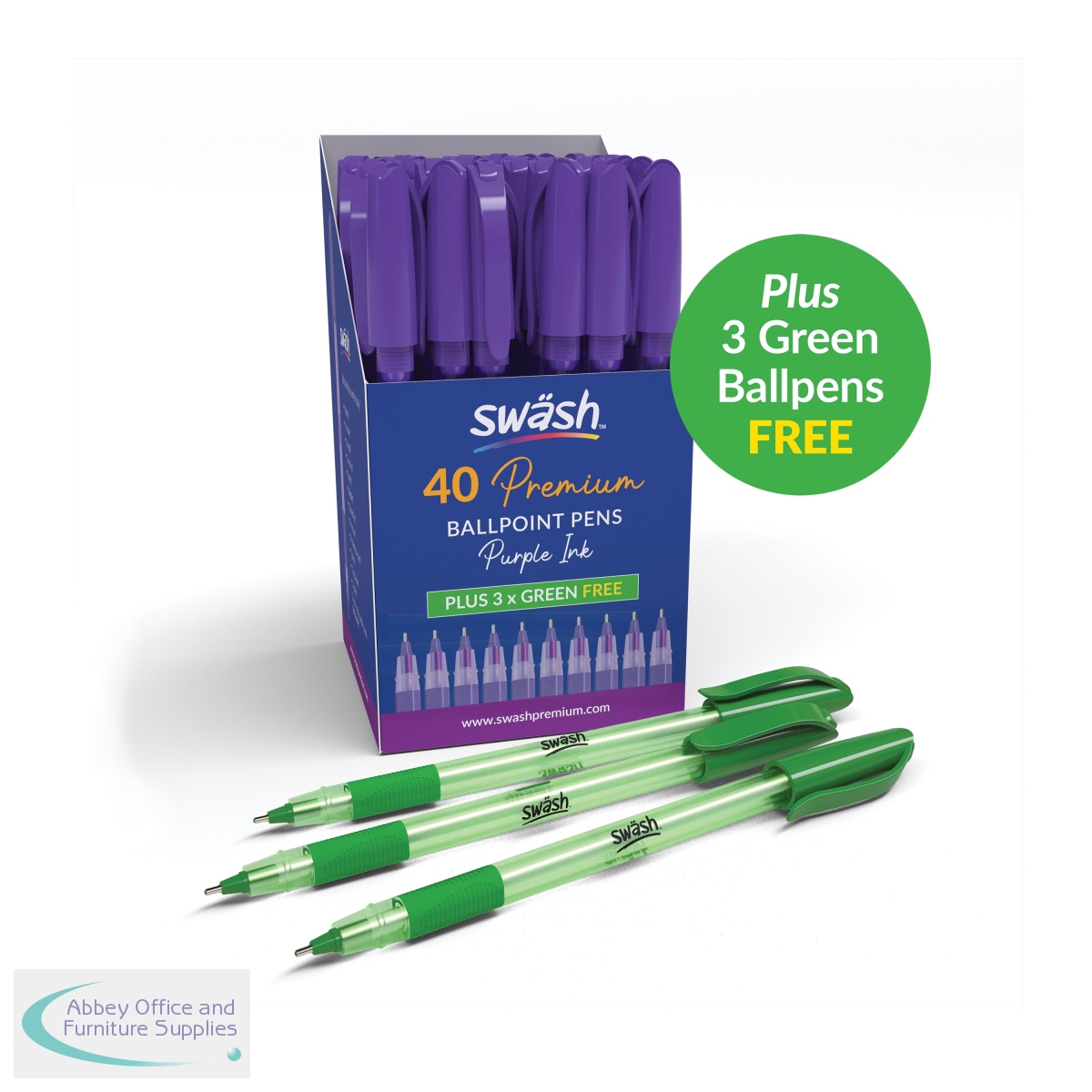 EG63408 - Swash Triangular Ballpoint Pens Rubber-Grip Purple (Pack of 40) + 3 Free Green BBT40PUR