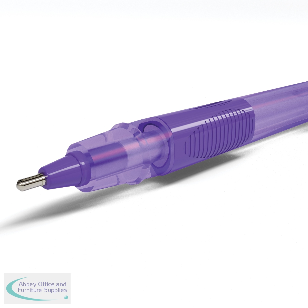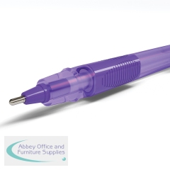 Premium tamper-resistant Ballpoint Pens with a medium tip. Its comfortable rubber-grip and triangular barrel is perfect for short or long term use. Lovely purple ink, to brighten up you work, popular with teachers for marking work, or for a vivid writing style. Ventilated safety caps, airplane-safe, and a high quality 1.0mm long-life nickel silver tip with tungsten carbide ball. Blob free ink for smooth writing every time.