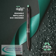 The new PILOT FriXion Ball+ is tailor made for those pursuing versatile writing solutions that seamlessly embrace modifications. It enables efficiency with its erasability and clean writing to meet with workers' expectations thanks to its patented Pilot thermo-sensitive ink. The FriXion Ball+ has a modern matte black design and an ergonomic triangular grip for a perfect hold. Featuring a 0.7mm tip size giving a 0.35mm line width, this erasable ink pen is not suitable for use on official documents. Made from 82% recycled plastic (excluding refill and non-plastic component). Refilling the FriXion Ball+ pen reduces plastic waste, releases 70% less CO2 into the atmosphere and saves money. Supplied in a pack of 10 blue rollerball pens.