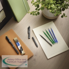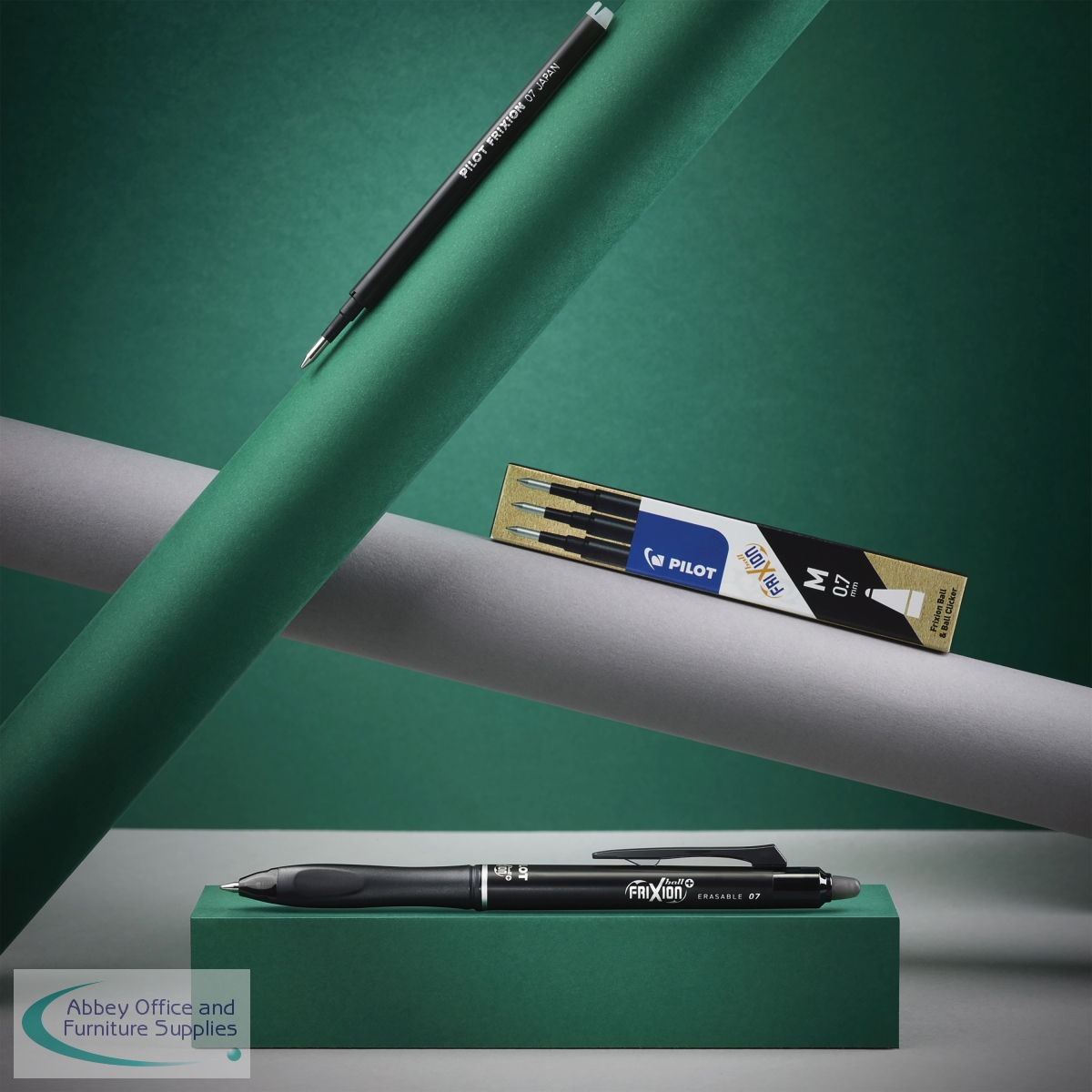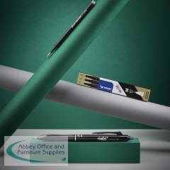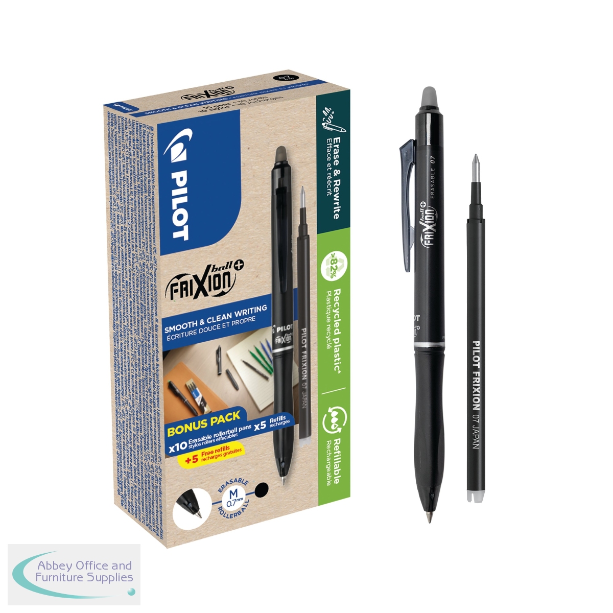 The new PILOT FriXion Ball+ is tailor made for those pursuing versatile writing solutions that seamlessly embrace modifications. It enables efficiency with its erasability and clean writing to meet with workers' expectations thanks to its patented Pilot thermo-sensitive ink. The FriXion Ball+ has a modern matte black design and an ergonomic triangular grip for a perfect hold. Featuring a 0.7mm tip size giving a 0.35mm line width, this erasable ink pen is not suitable for use on official documents. Made from 82% recycled plastic (excluding refill and non-plastic component). Refilling the FriXion Ball+ pen reduces plastic waste, releases 70% less CO2 into the atmosphere and saves money. Supplied in a pack of 20 black rollerball pens.