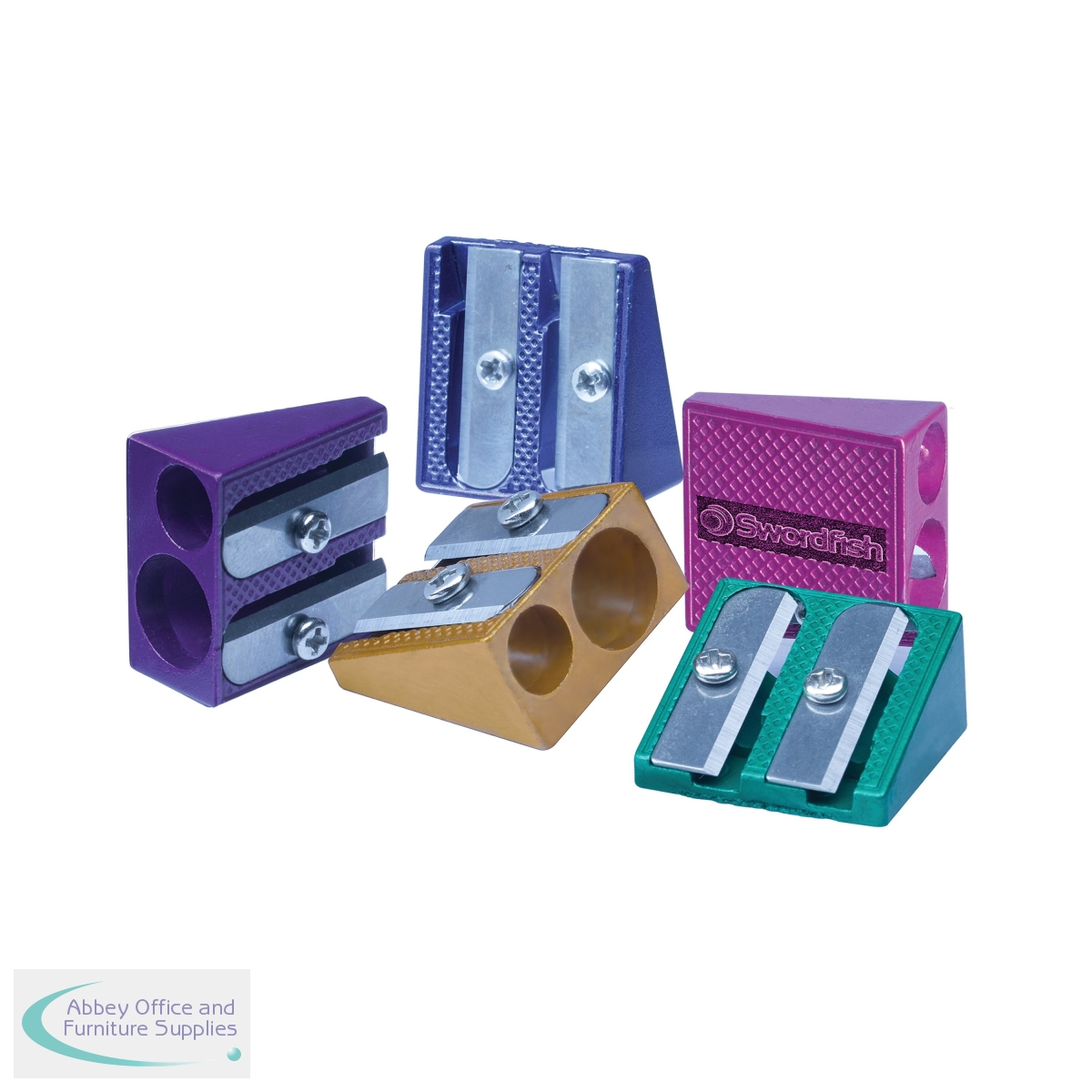 SK01102 - Swordfish Double Hole Metal Wedge Sharpener Assorted (Pack of 20) 40382