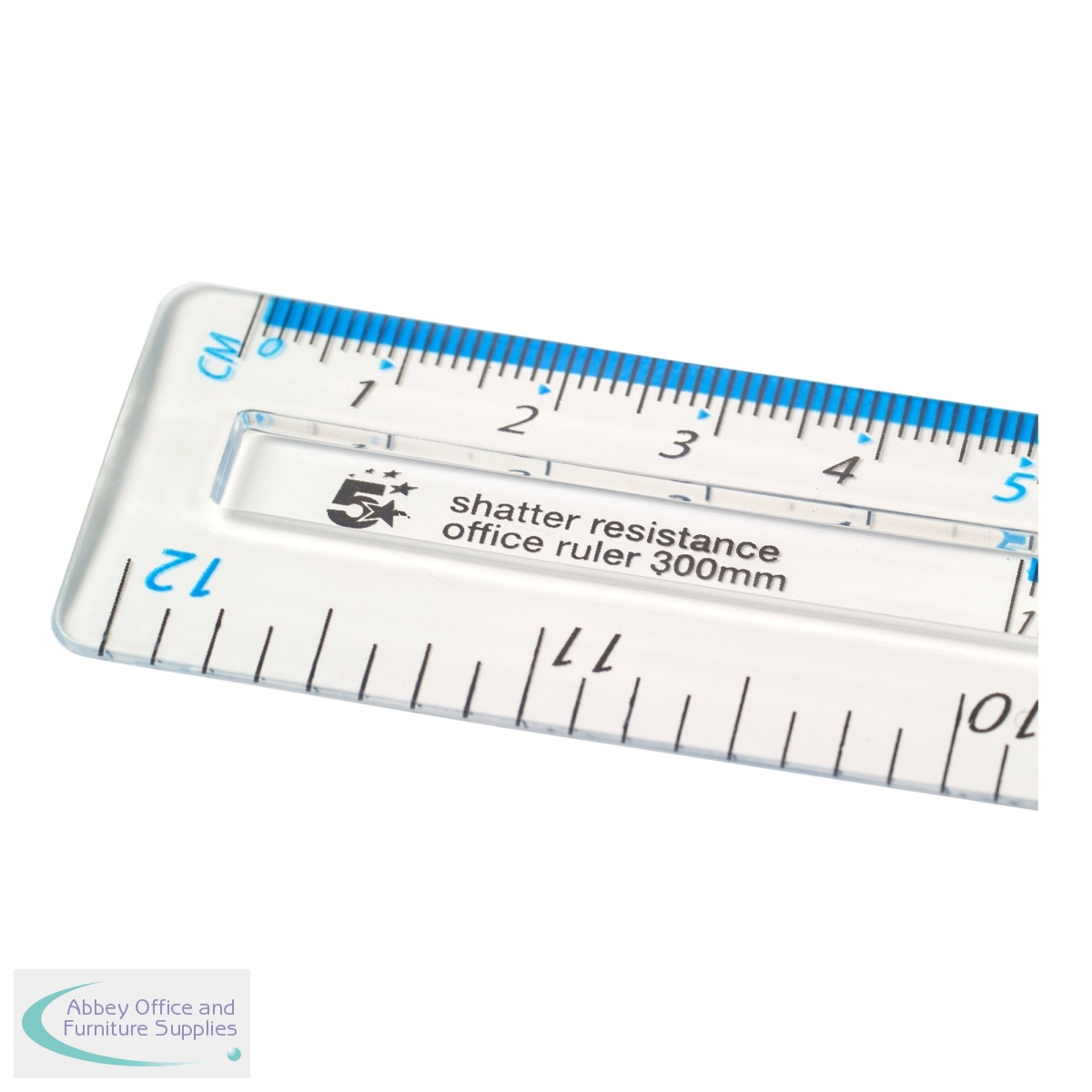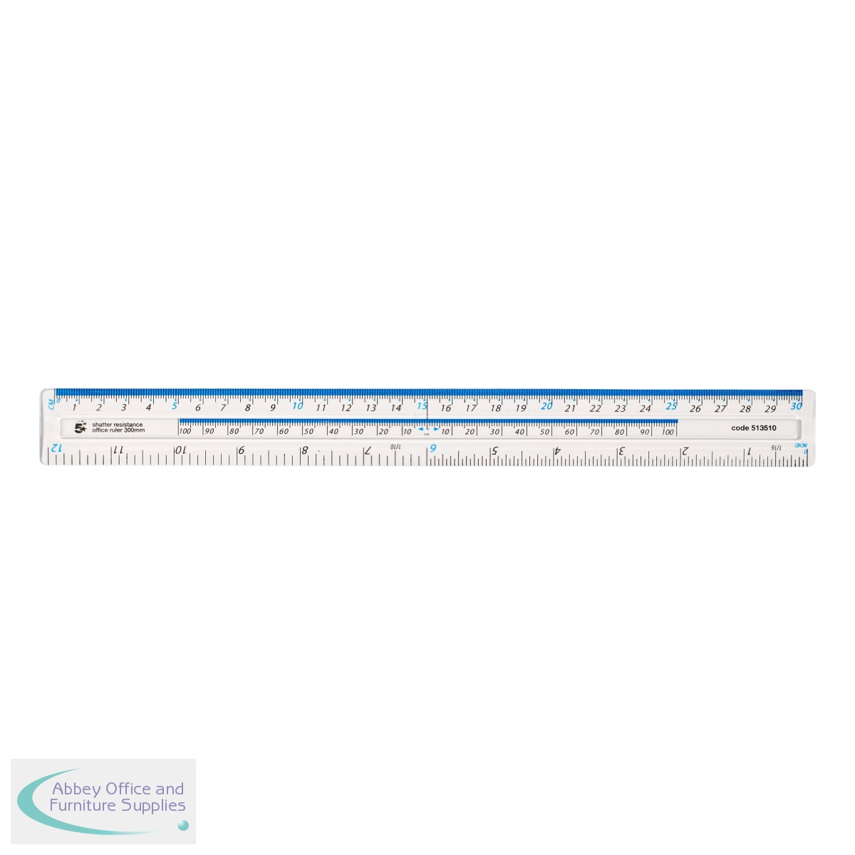FS513510 - 5 Star Office Ruler Plastic Shatter-resistant Metric and Imperial Markings 300mm Clear