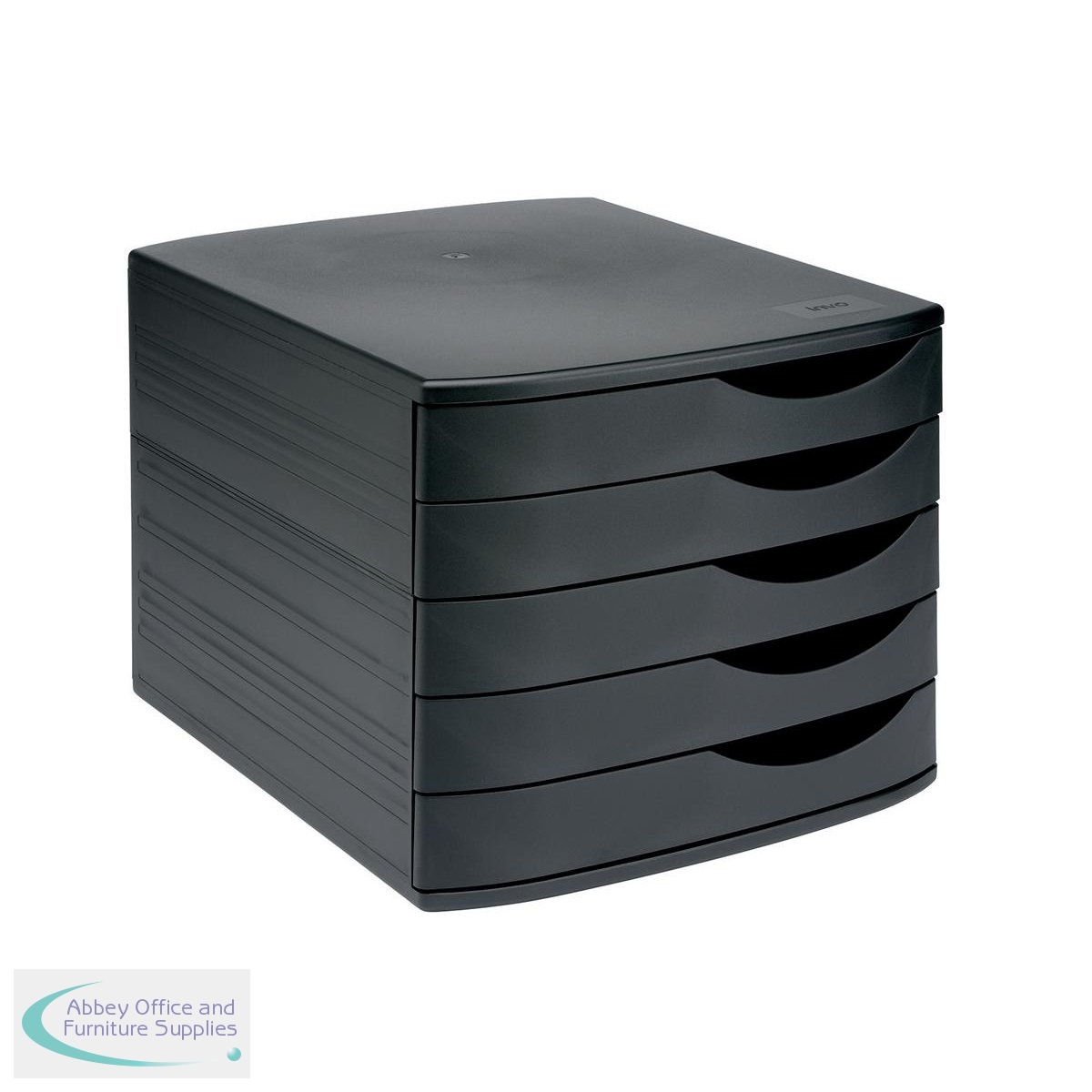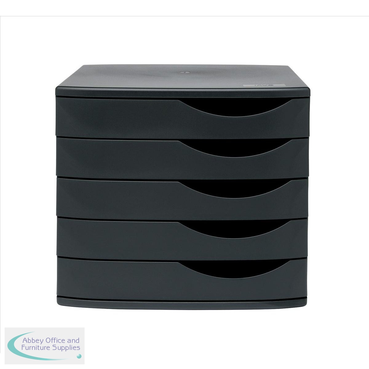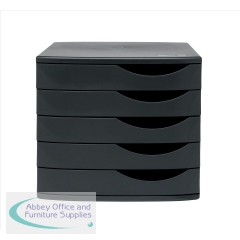 Sleek design, handy plastic desktop drawer set with five drawers which take documents A4 and up to 260x350mm. Pull handle to the right of the drawer for ease of access.