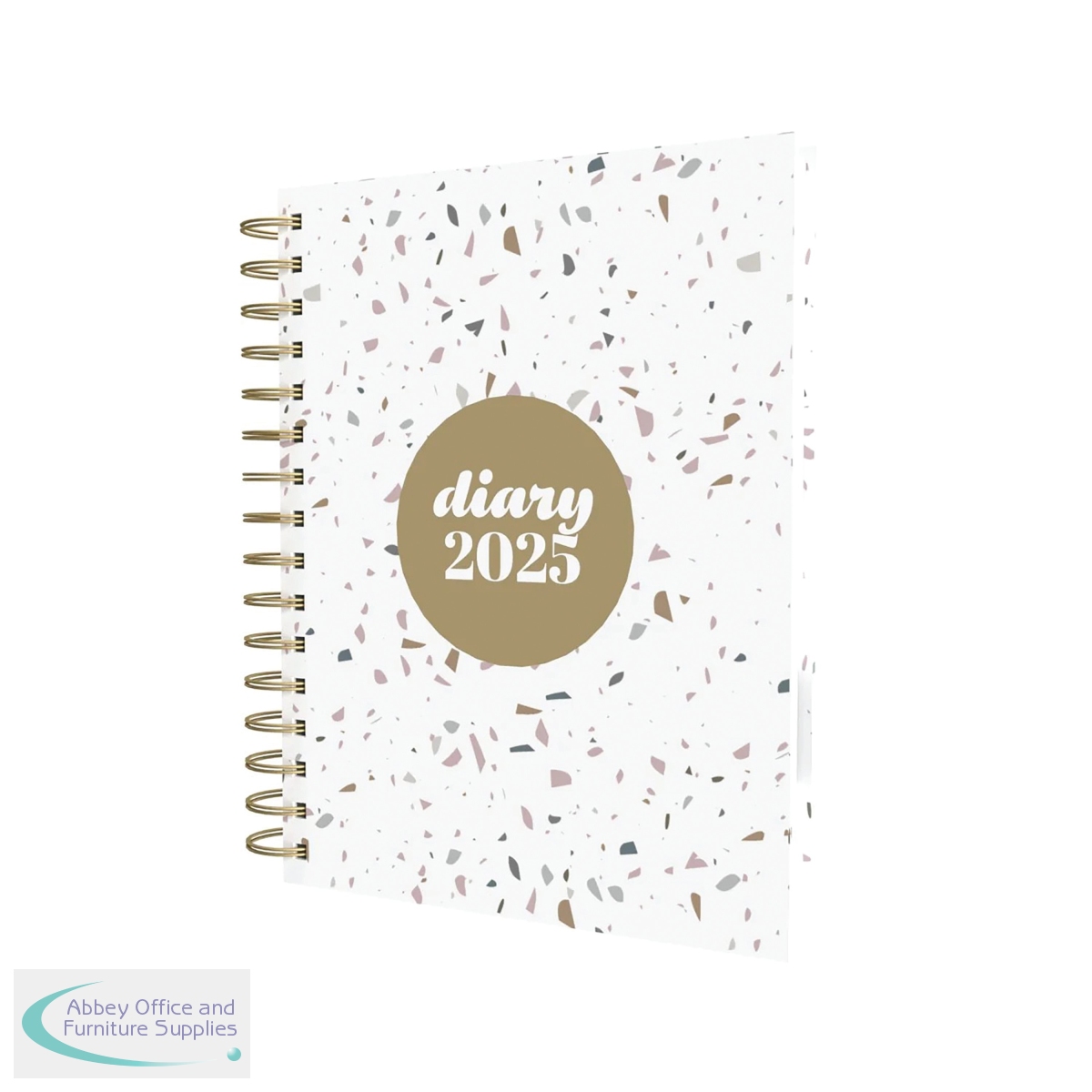 CDPW51WHTZ25 - Collins Day To Page Diary Scandi Terrazzo Design A5 White E-PW51.WHTZ-25