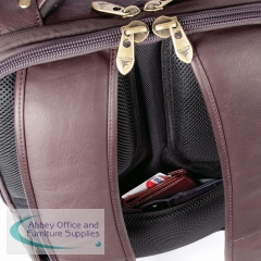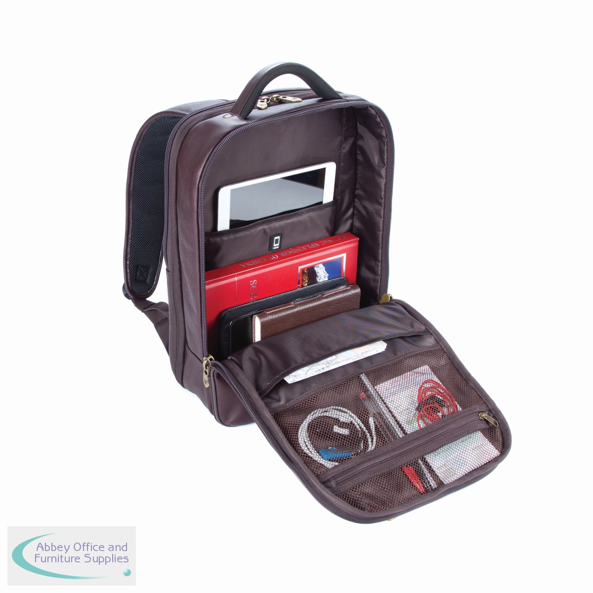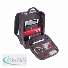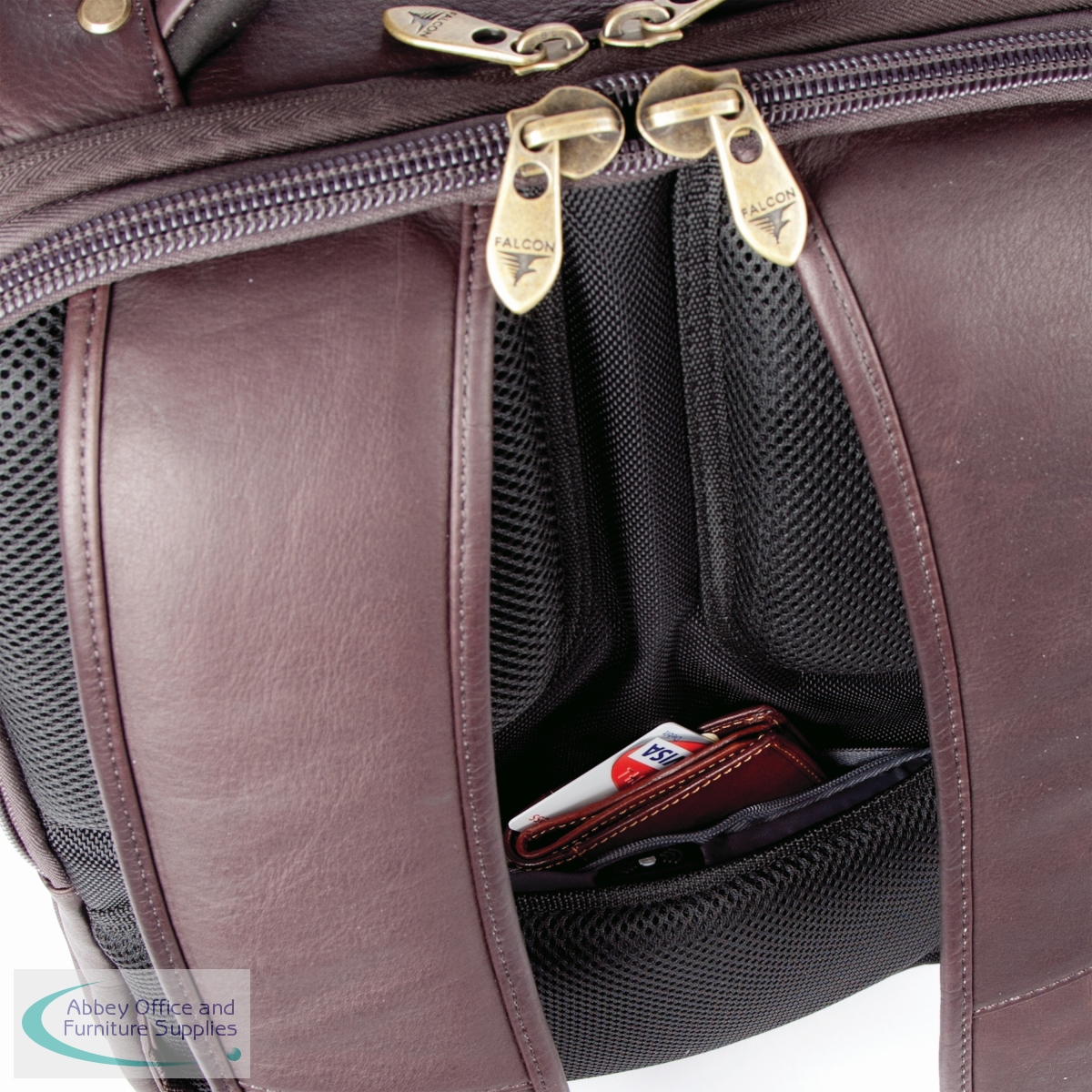 The Falcon Backpack Full Grain Luxury Leather with a padded laptop section for laptops up to 15.6 inches. Made from the finest full grain natural leather. Contains a padded laptop pocket and an additional tablet pocket for tablets up to 10,1 inches. Cushioned and gunmetal riveted carrying handle. TSA Checkpoint friendly laptop compartment. 3 external front zipped pockets perfect for easy access and an internal luggage compartment.