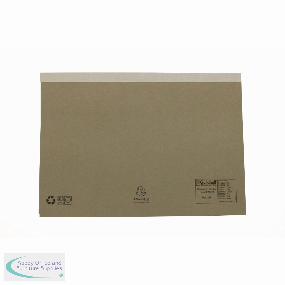 The Guildhall legal and professional filing range is manufactured exclusively from premium quality heavyweight 315gsm manilla, ensuring strength, durability and colour consistency required for the storage and protection of important documents. Made from 100% recycled material, it also has superb archival qualities and is DIN 6738 certified. Featuring two pockets each holding up to 200 sheets with a reinforced cloth tape spine for extra durability. Supplied in a pack of 25.