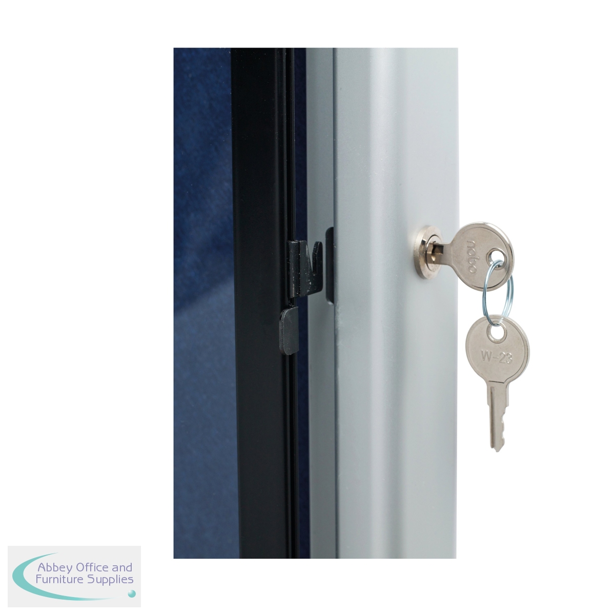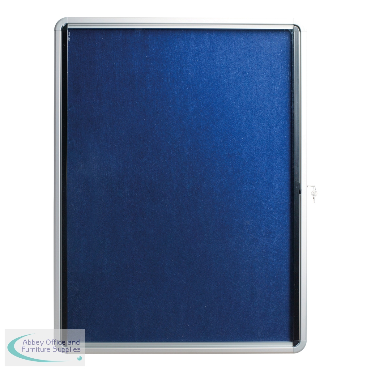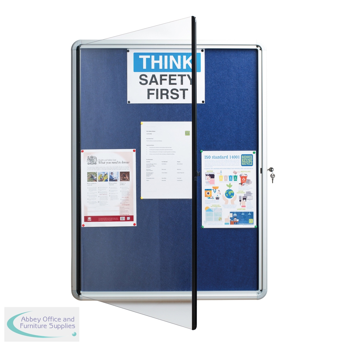 FS937637 - 5 Star Glazed Noticeboard with Swing Door Locking Aluminium Frame Blue Felt 900x600mm