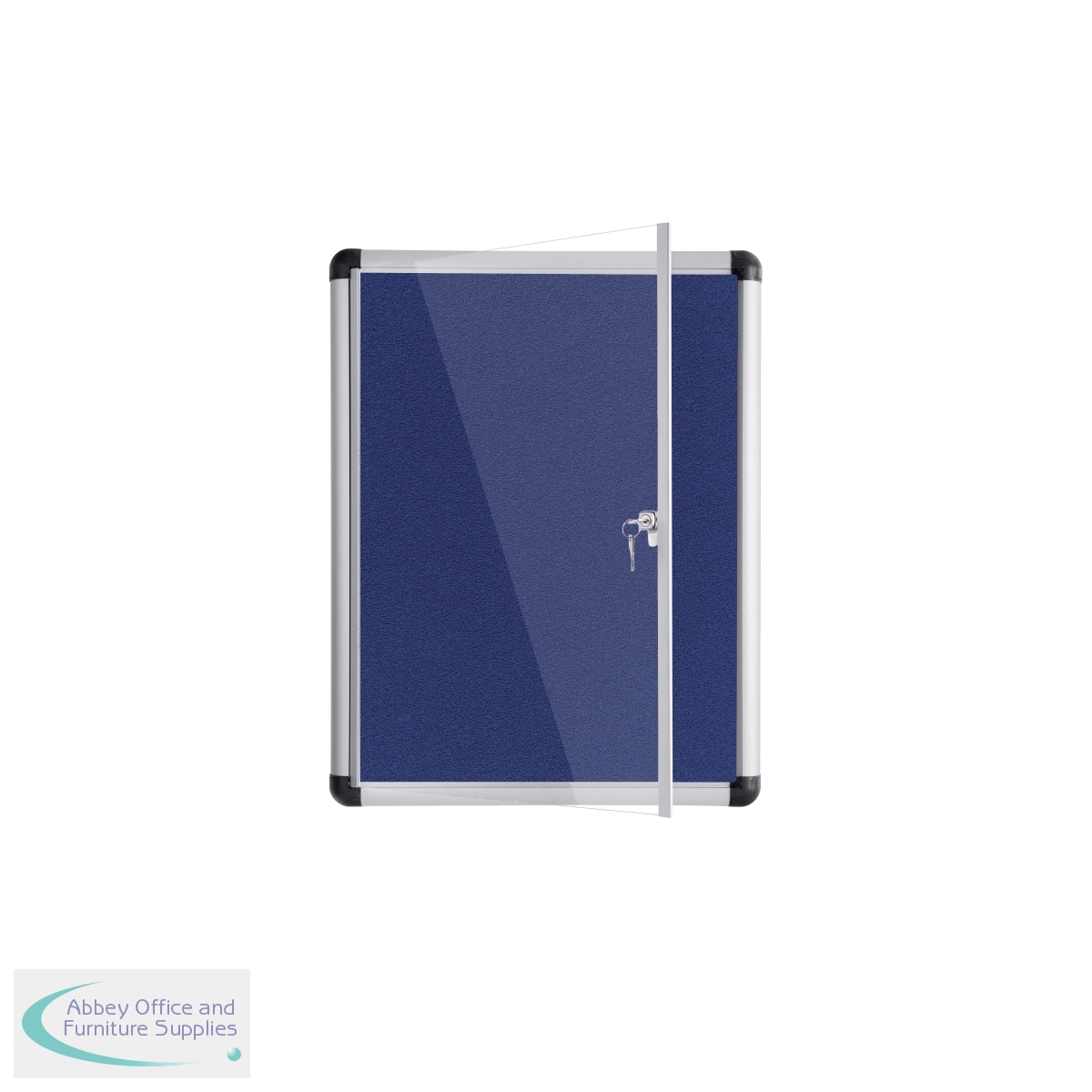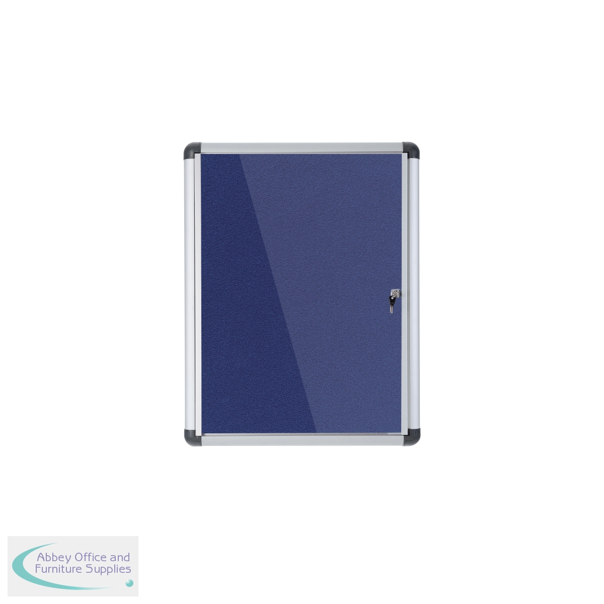 FS937645 - 5 Star Glazed Noticeboard with Swing Door Locking Aluminium Frame Blue Felt 900x1200mm