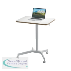 Sit/Stand, Move. Whether you are aiming for a healthier lifestyle or want to avoid aches and pains while working, our space-saving mobile sit stand desk will elevate your workspace to new heights.The compact design is ideal for flexible use and as a temporary desk where space is limited. Perfect as a small home office desk or for hot desking areas or meeting rooms it provides space for a laptop, keyboard and other accessories e.g. wrist rests and mouse mats. This desk has a smooth pneumatic height adjustment feature allowing you to find the perfect ergonomic position. Easily switch between sitting and standing to promote muscle movement and which has a positive impact on wellbeing. The 4 locking castor wheels make the desk easy to move when required. This modern and minimalist sit-stand desk is ideal for your home or office to enhance comfort and maximise productivity. It is our mission to provide solutions that can empower individuals to thrive at work and beyond promoting positive mental health and physical wellness.