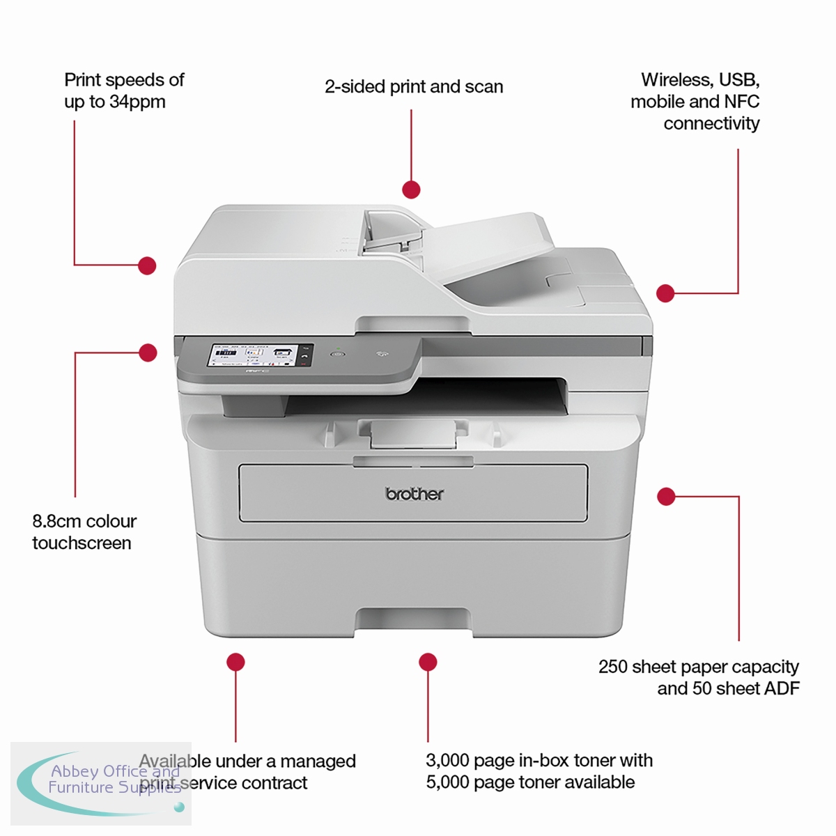This professional, compact, mono laser all-in-one printer is Brother's most quiet and compact, professional mono laser all-in-one printer that enables you to make the most of your office space. Also available as part of a managed print service for a hassle-free printing experience.