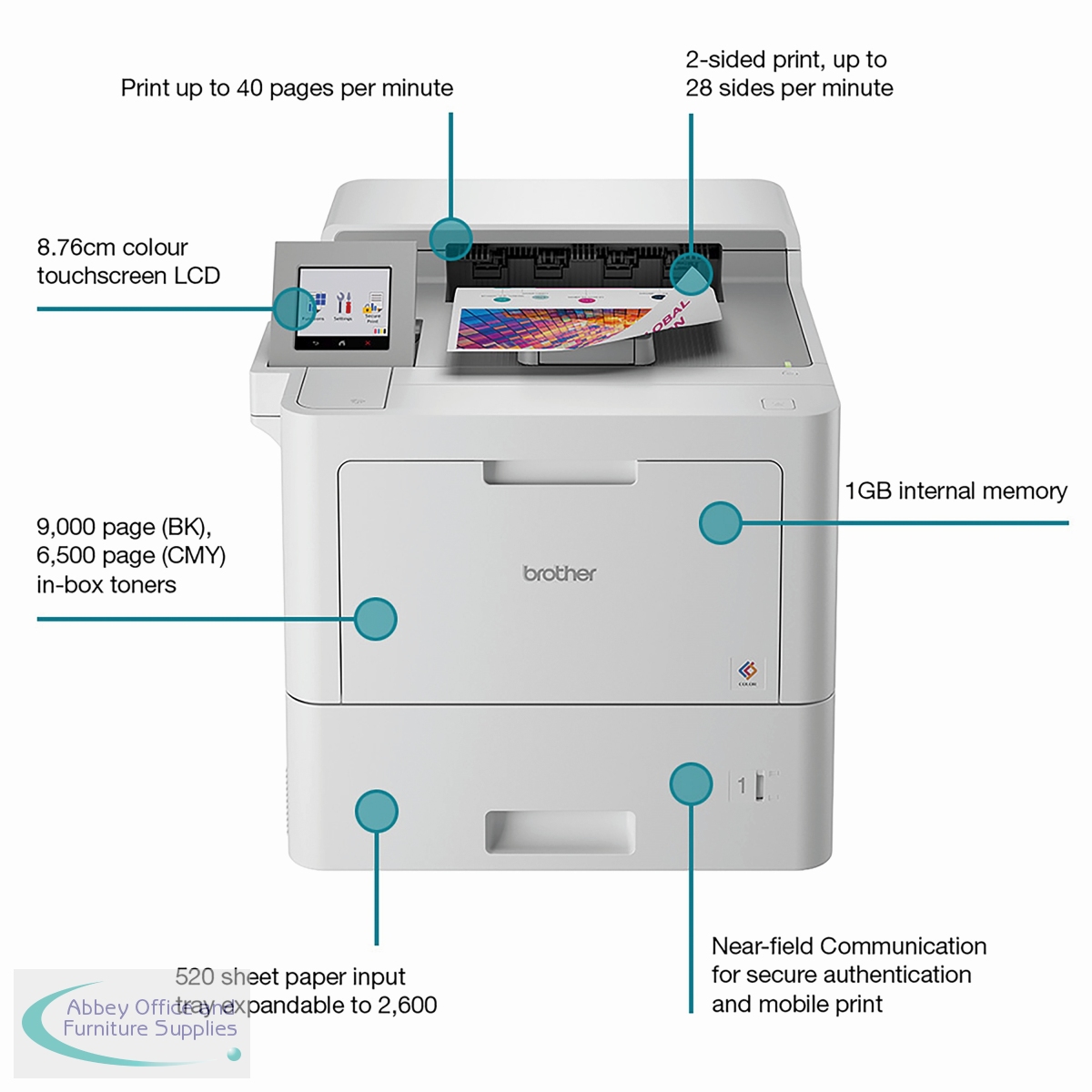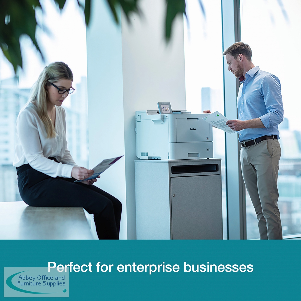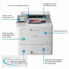 The Brother HL-L9430CDN printer is a cost-effective, high quality colour printer, designed to deliver a professional performance, with high speed glossy colour printing you can rely on. Features a fast print speed up to 40 pages per minute, including 2-sided printing (28 sides per minute). Comes with Cloud Secure Print so you can securely print without installing additional drivers or apps. Includes enterprise level security, supporting the latest industry-standard security protocols to keep your data secure. You can further protect your device by setting up user authentication, whereby access to certain settings and functions are restricted to authorised users or groups. Supplied with a 520 sheet paper tray, a multipurpose tray with capacity for 100 sheets, 15 envelopes.