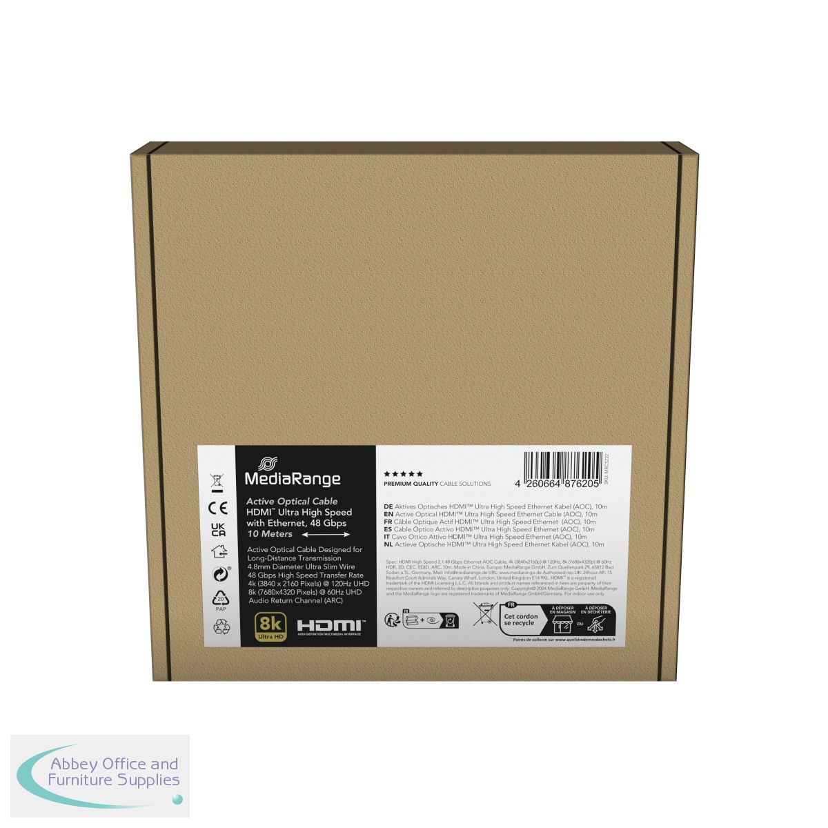 WX87620 - Mediarange Active Optical HDMI Ethernet Cable V2.1 48 Gbps 10m Black MRCS222