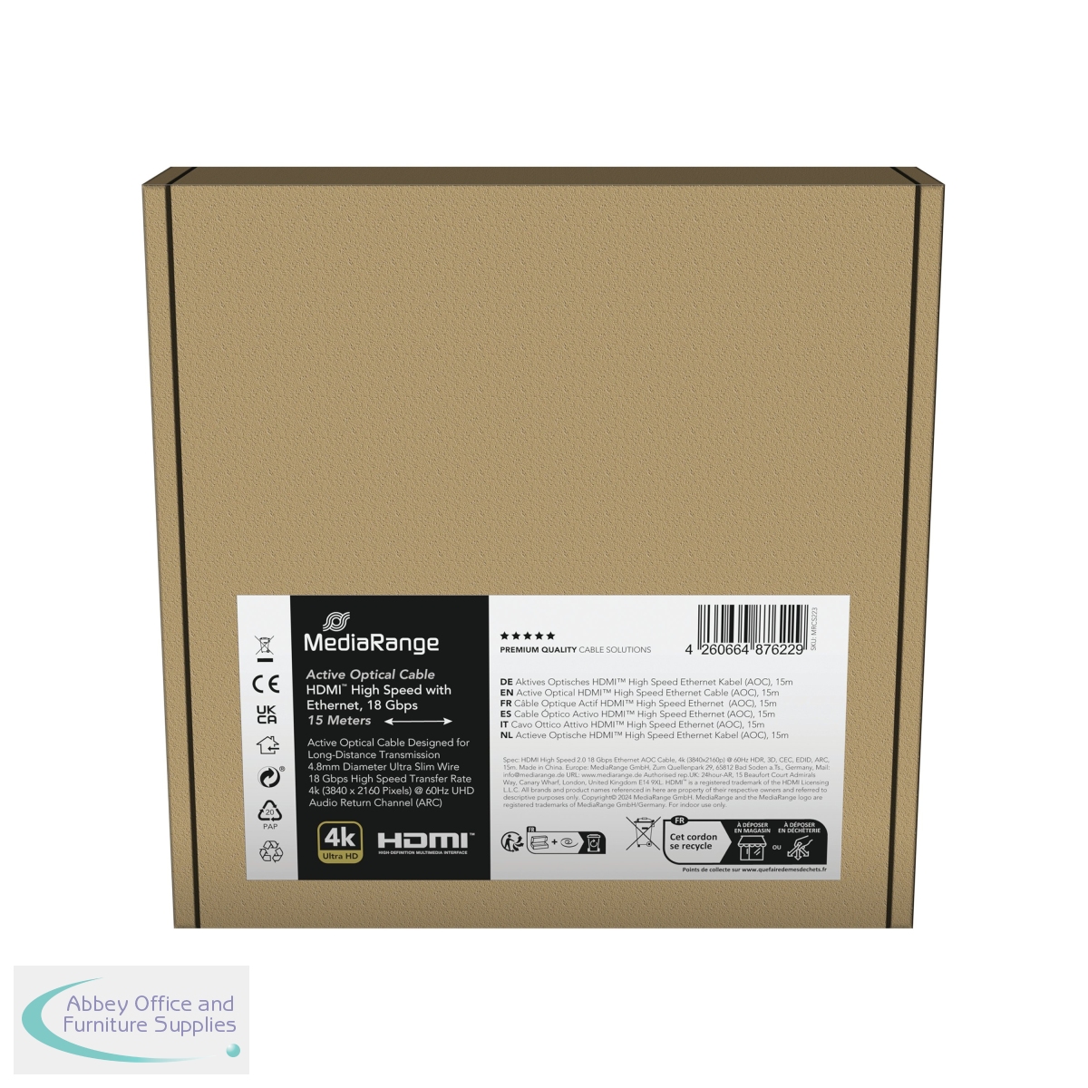 WX87622 - Mediarange Active Optical HDMI Ethernet Cable V2.0 18 Gbps 15M Black MRCS223