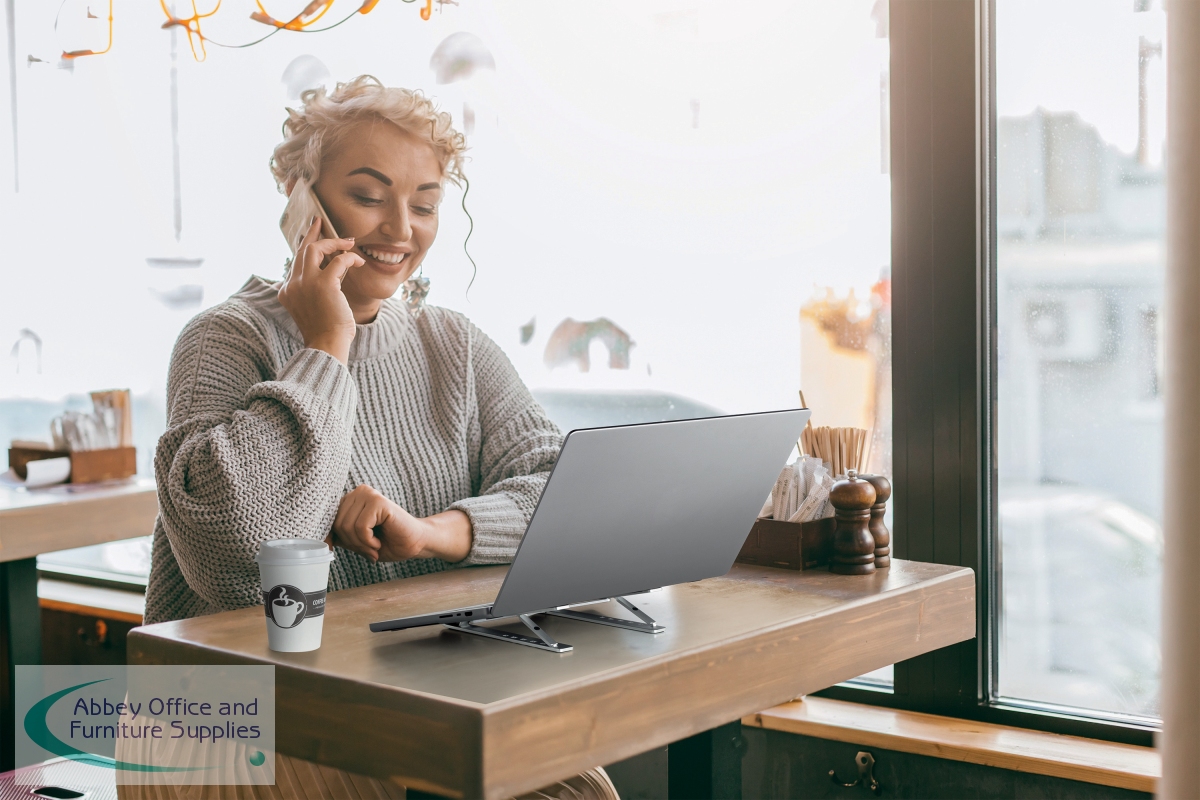 Durable Premium Foldable Laptop Stand Rise is a universally adjustable stand for laptops and tablets up to 15 inches. Space-saving, foldable and portable it is also height adjustable in 6 easy steps. Facilitates ergonomic working with its flexible height and tilt angle adjustability. It has a maximum load capacity of 5kg. Non-slip rubber pads protect against scratches and comes complete with a practical travel bag.