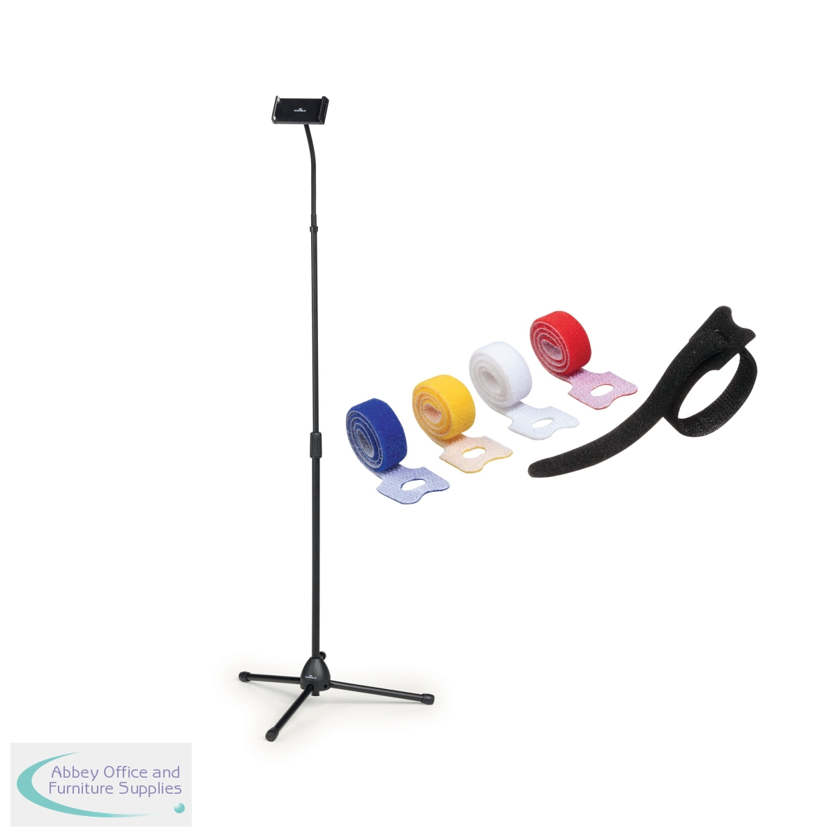 Durable Gooseneck floor stand with tablet and phone holder, featuring a flexible arm and 360 degree ball joint. Suitable for all phones and tablets including iPhone and iPad from 4.7-13 inches (up to 800g). The telescopic stand can be adjusted to any height up to 1.7m. Can be folded down to 70cm in the included carrying bag, the tripod is mobile and flexible to use. The ergonomic designs feature a flexible gooseneck which allows an individual and stepless height and viewing angle adjustment. Non-slip pads in the clamp keep your device secure and protect against scratches. Easily charge your devices through the integrated cable management outlet in the clamp. Can be adjusted to any angle through 360 degree rotation. This promotion includes 5 FREE Cavoline cable management grip ties in assorted colours.