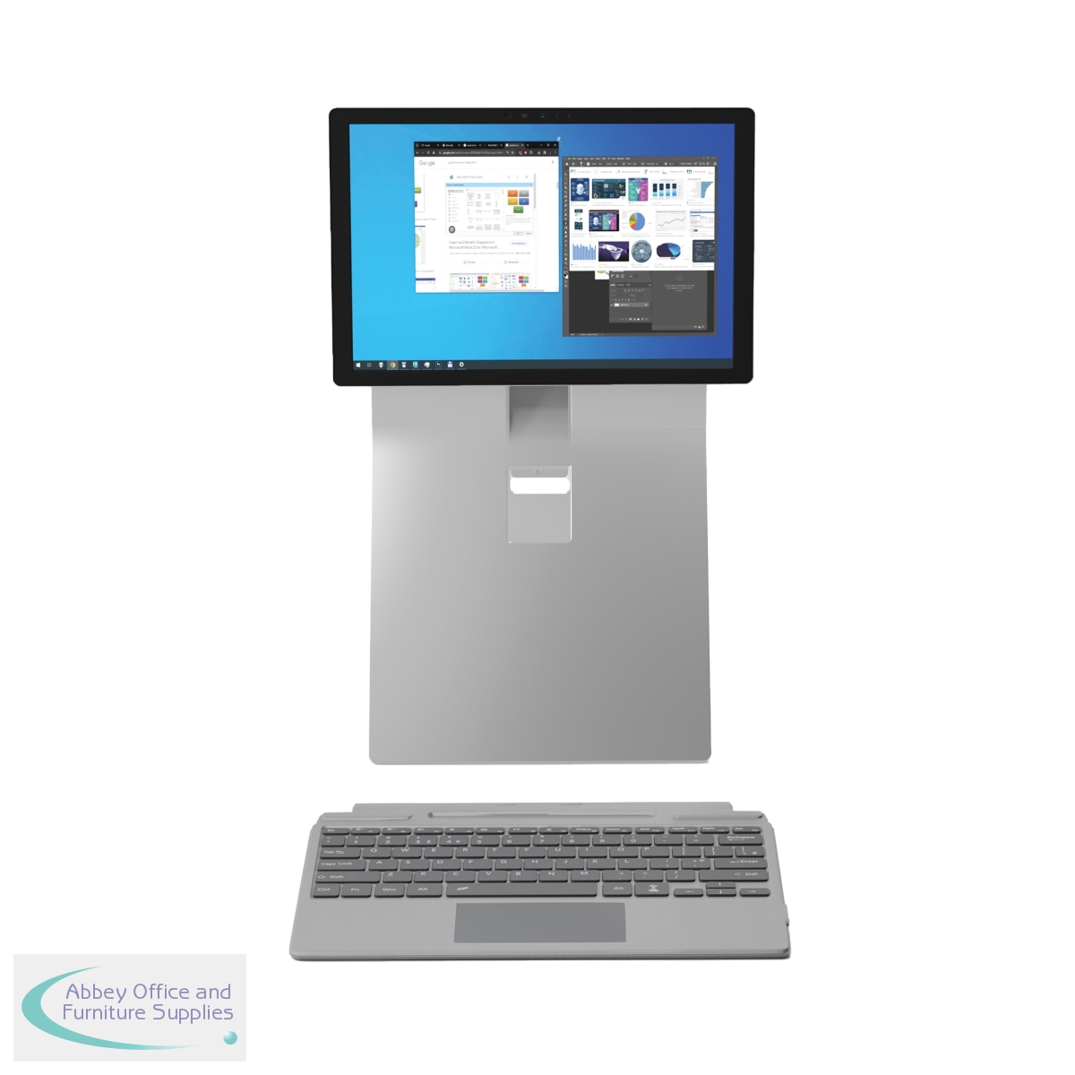 Specialised ergonomic laptop stand developed to fit Microsofts Surface Pro Product family. The height adjustable design allows the KickStand to raise the laptop to a comfortable working position, with or without the type cover. A versatile ergonomic accessory designed to comply with UK and European health and safety regulations. Created with the user in mind: instant setup and pack away, lightweight and thin for true mobility, easily adjustable screen elevation and inclination. Refined design, minimalist but very sturdy, guaranteed against malfunction for life.