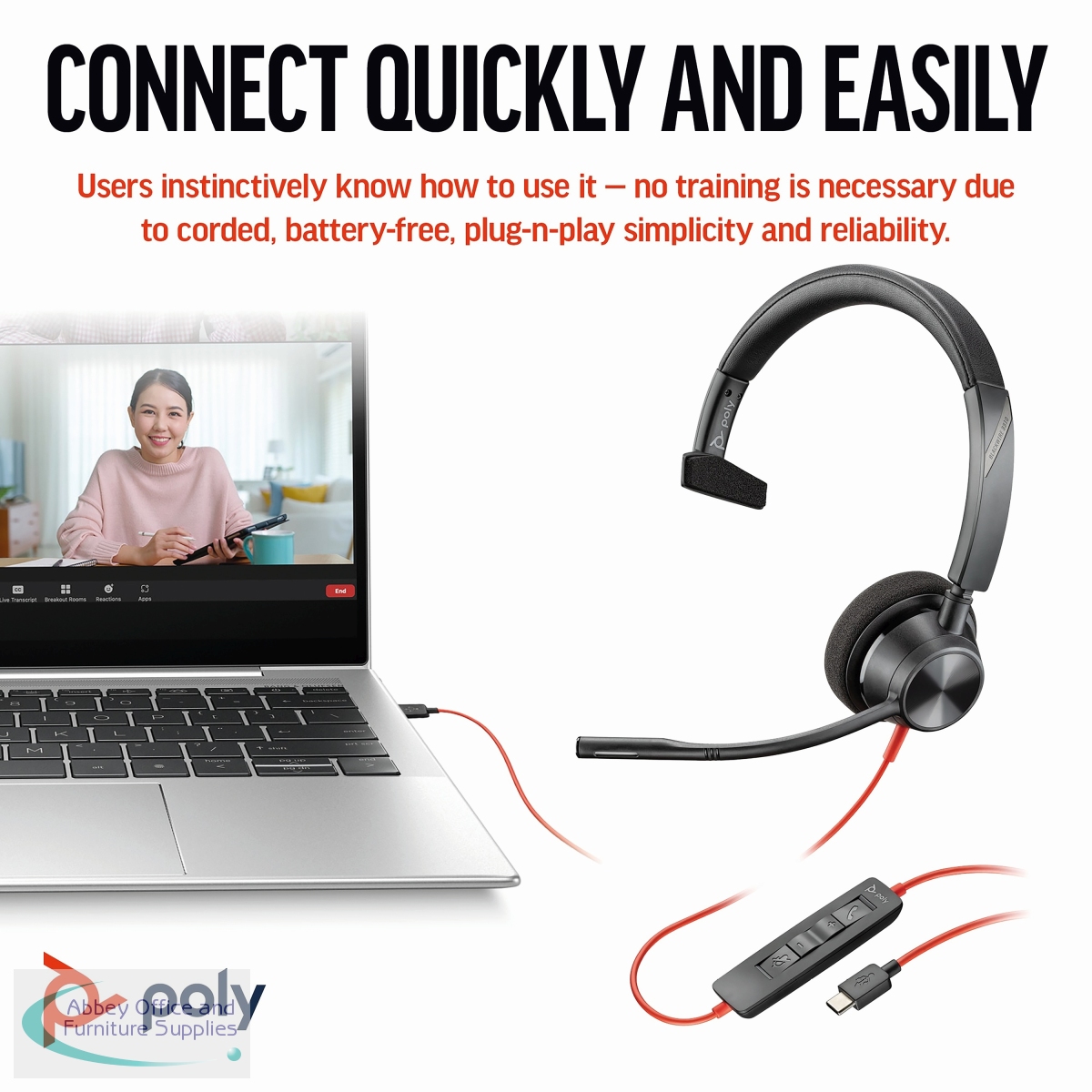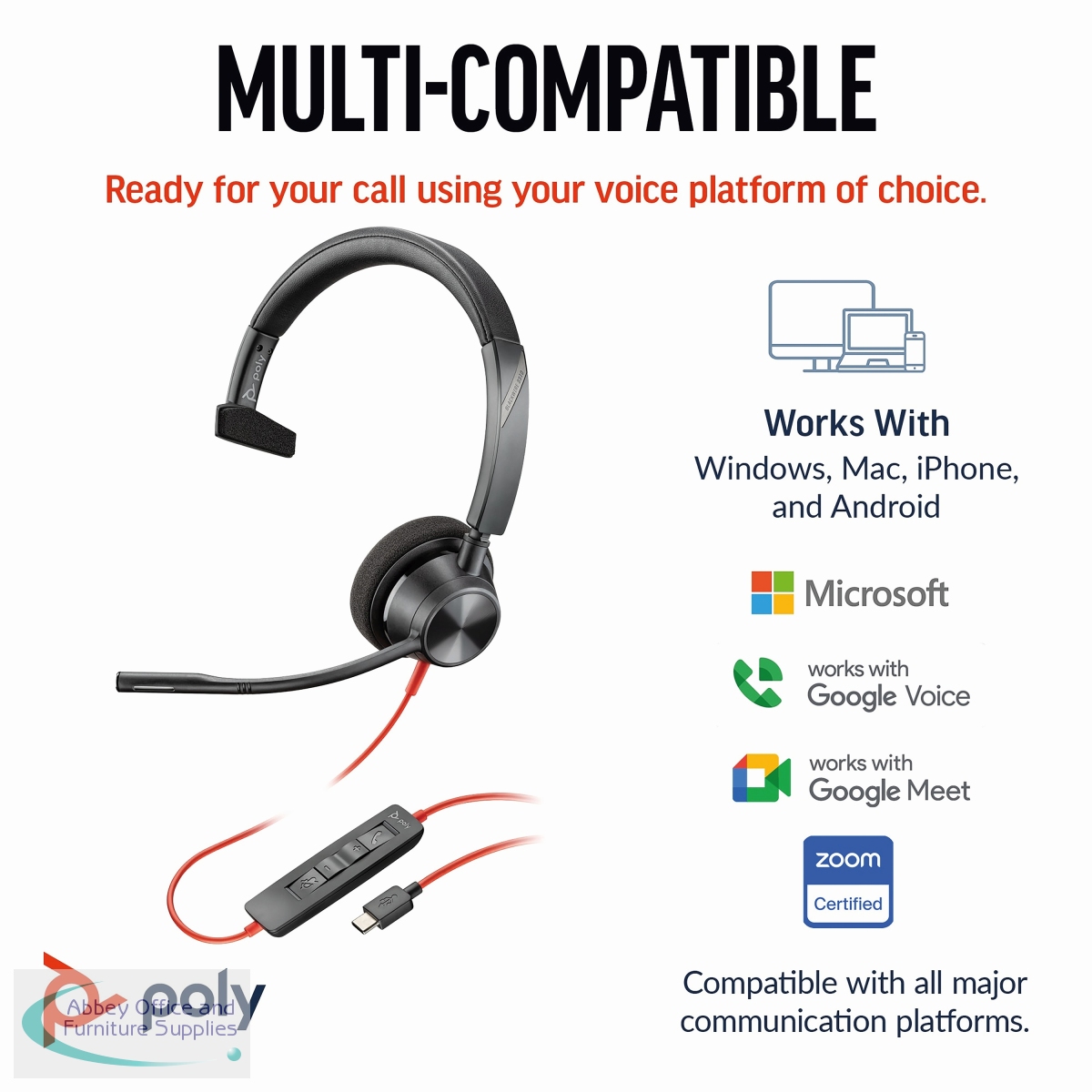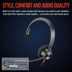 PY42898 - Poly Blackwire 3310 Monaural USB-C/A Headset 8X215AA