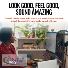 Style, comfort and audio quality. Built for style with a sleek design that focuses on comfort and reliability. Poly signature audio quality so you know you will sound great. And intuitive and simple features so every user can connect to their preferred device simply and easily.