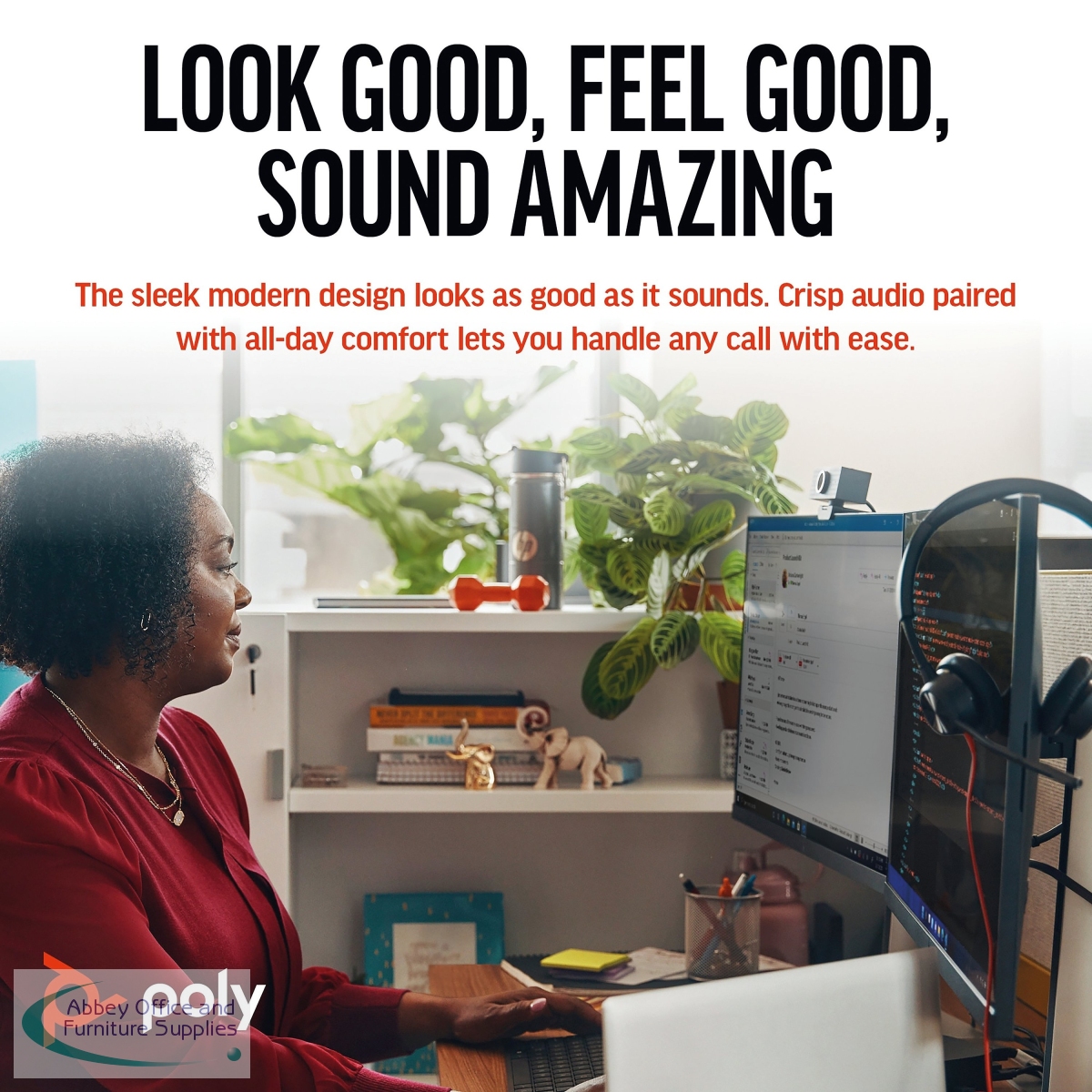 Style, comfort and audio quality. Built for style with a sleek design that focuses on comfort and reliability. Poly signature audio quality so you know you will sound great. And intuitive and simple features so every user can connect to their preferred device simply and easily.