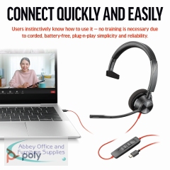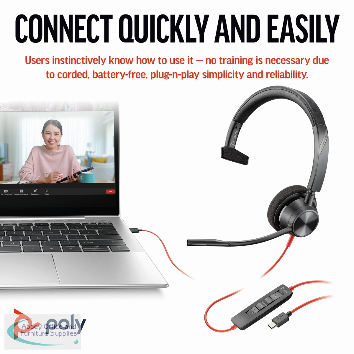 PY42901 - Poly Blackwire 3310 Monaural MS USB-C/A Headset 8X216AA