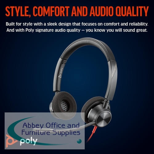 Style, comfort and audio quality. Built for style with a sleek design that focuses on comfort and reliability. Poly signature audio quality so you know you will sound great. And intuitive and simple features so every user can connect to their preferred device simply and easily.