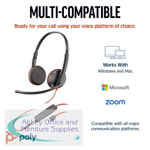 PY42941 - Poly Blackwire 3225 Stereo UC USB-C/A +3.5mm Headset 8X229AA