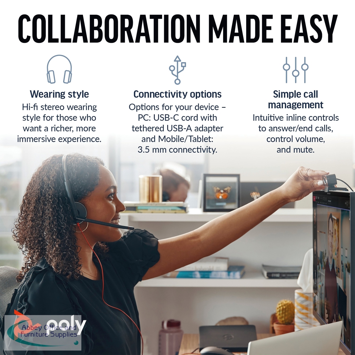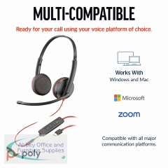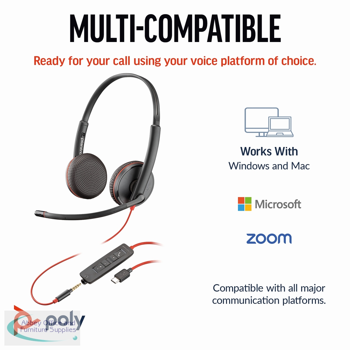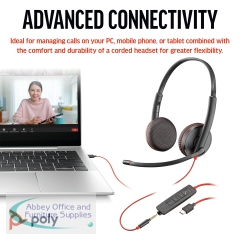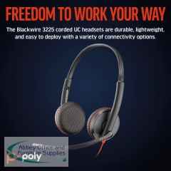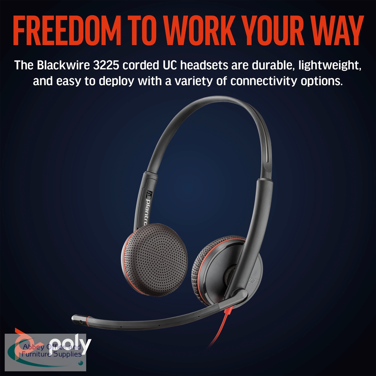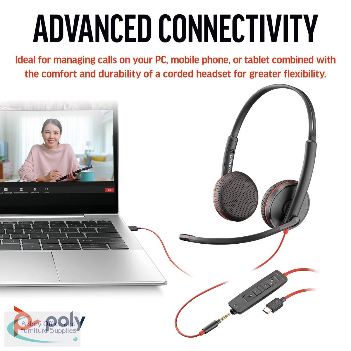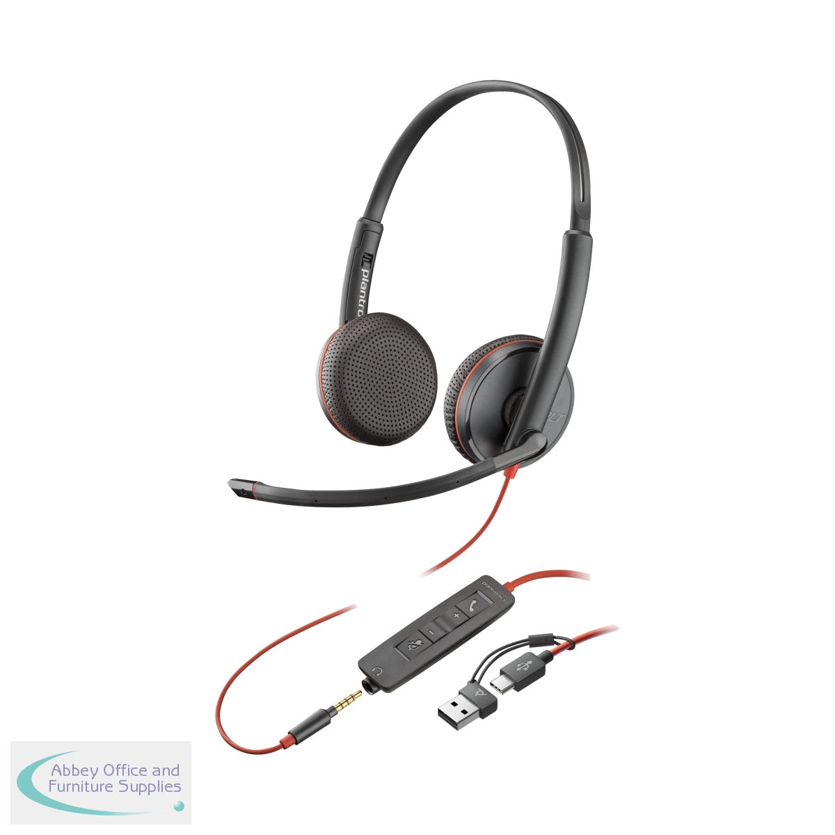 PY43308 - Poly Blackwire 3225 Stereo UC USB-C/A +3.5mm Headset Bulk 8X229A6