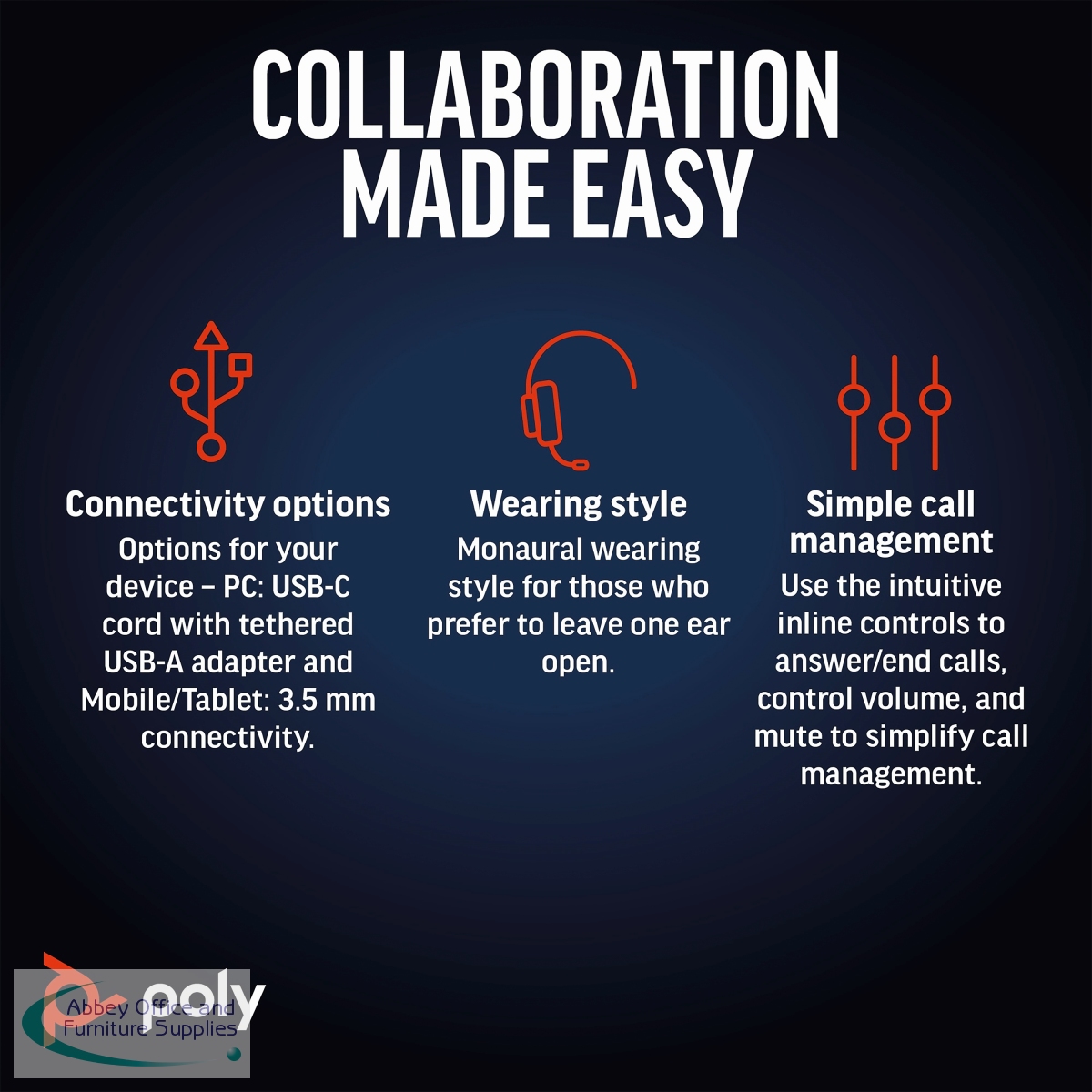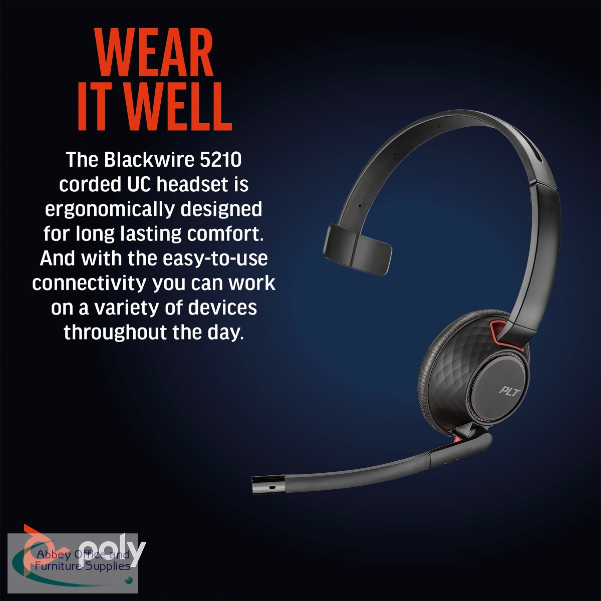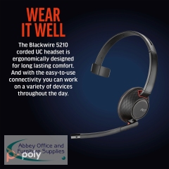 PY43309 - Poly Blackwire 5210 Monaural USB-C/A +3.5mm Headset Bulk 8X230A6