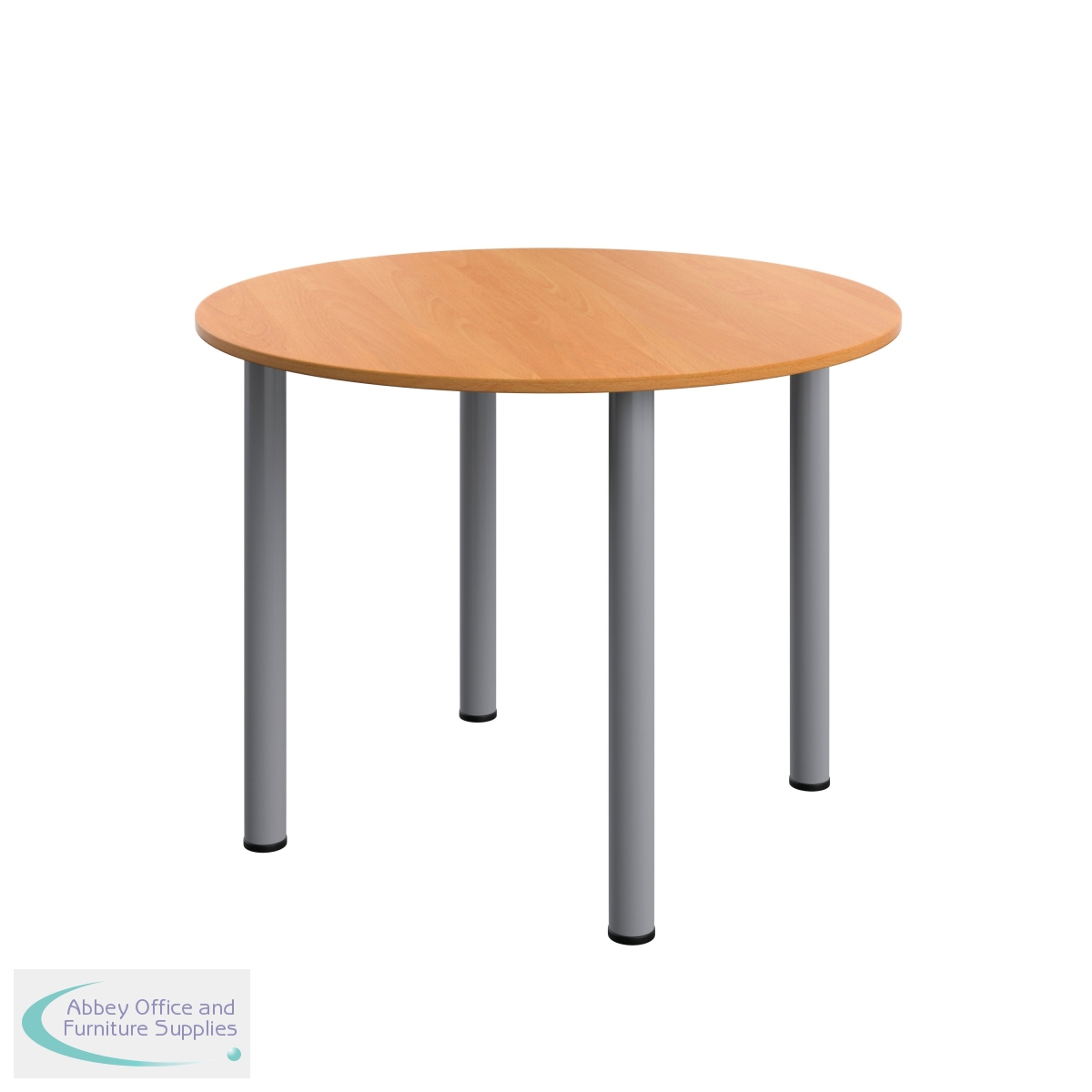 KF800233 - Serrion Pole Leg Round Meeting Table 1000x1000x730mm Beech/Silver KF800233