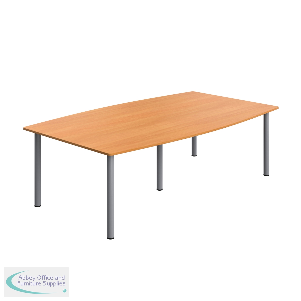 KF800240 - Serrion Pole Leg Barrel Shaped Table 2400x1200x730mm Beech/Silver KF800240