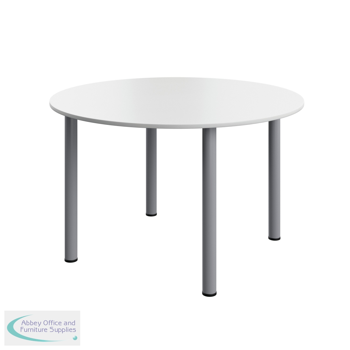 KF800280 - Serrion Pole Leg Round Meeting Table 1200x1200x730 White/Silver KF800280