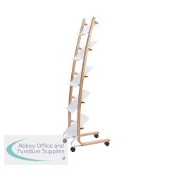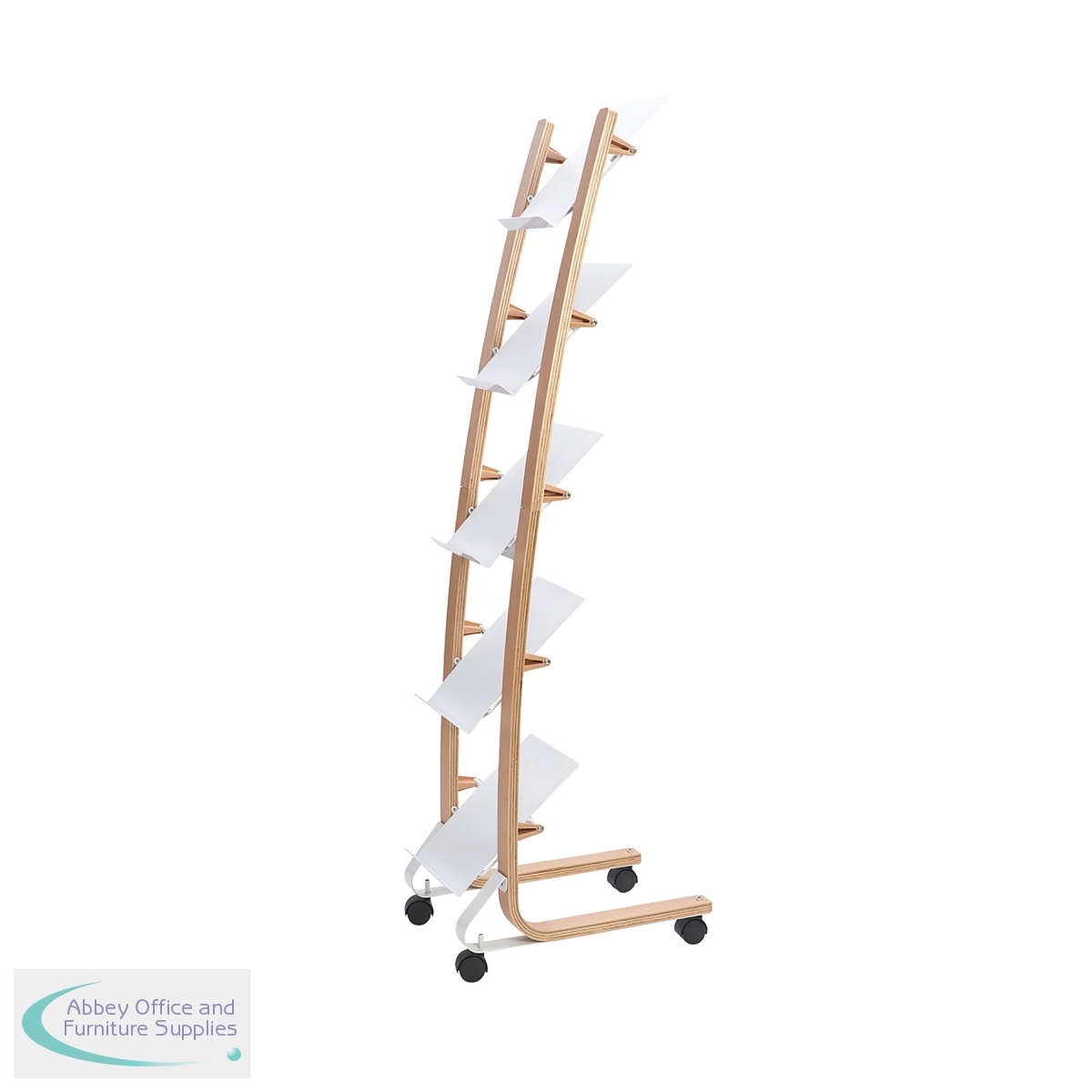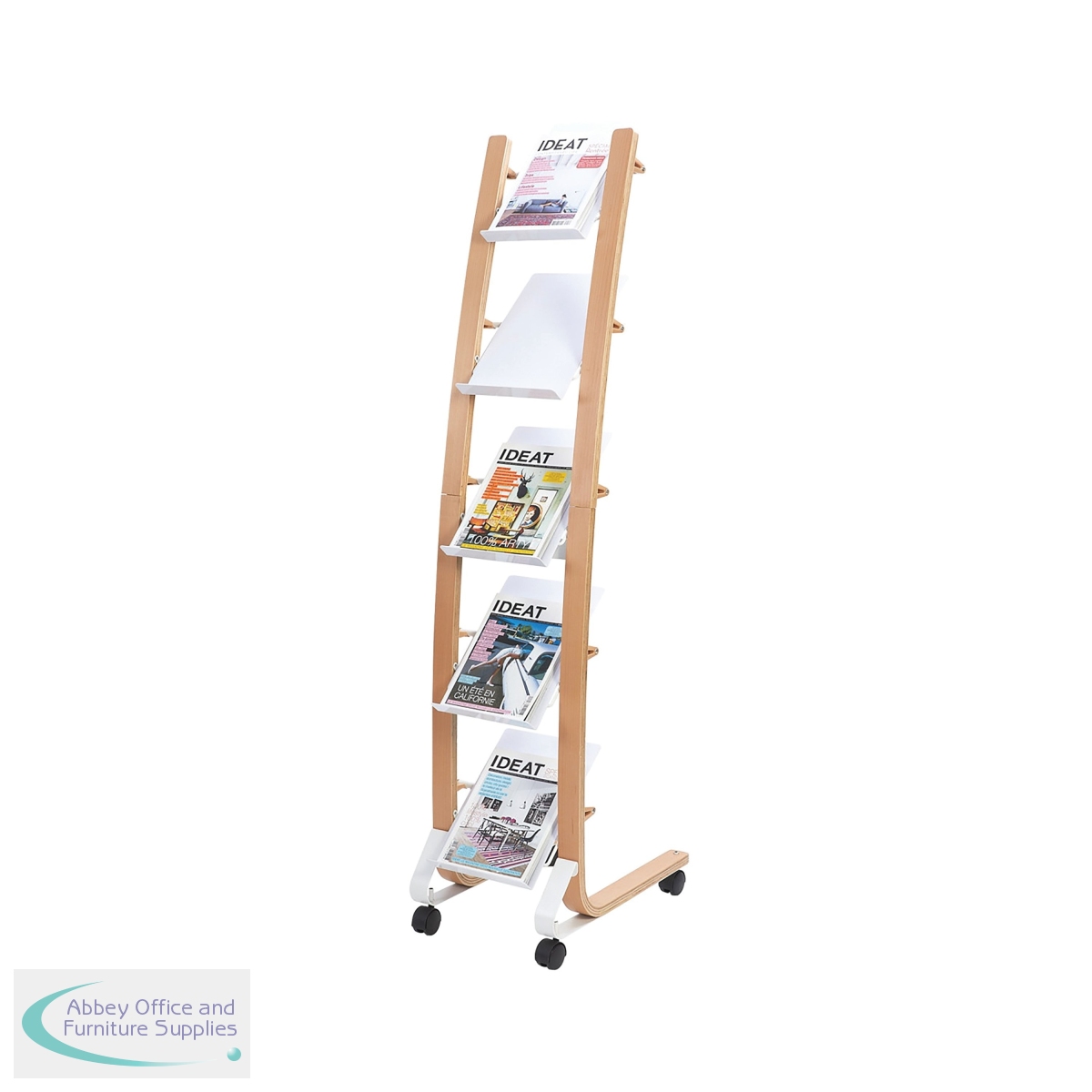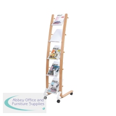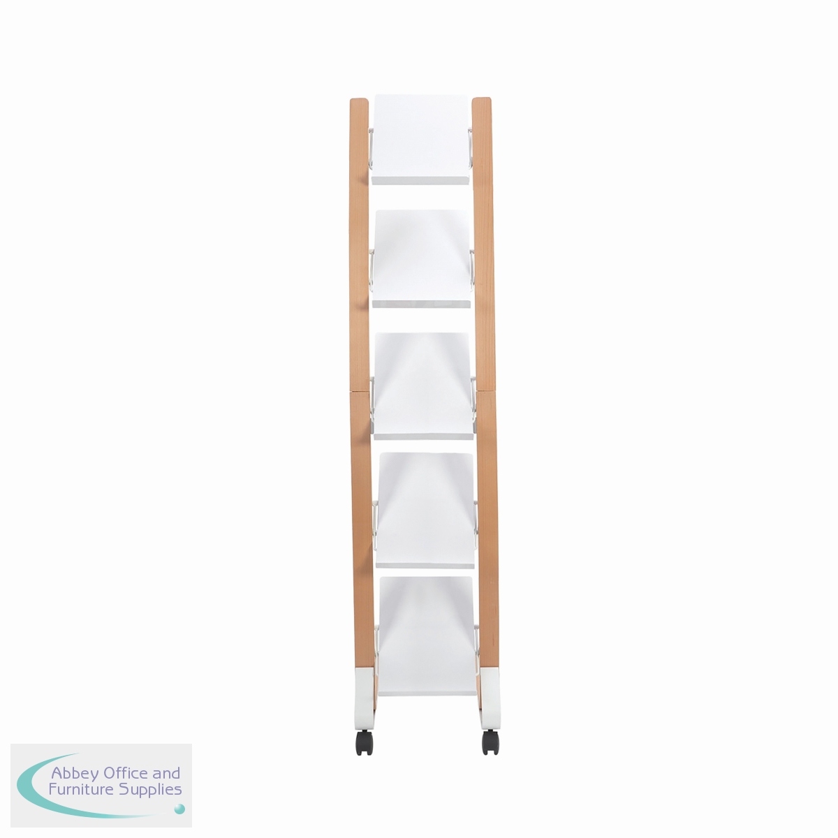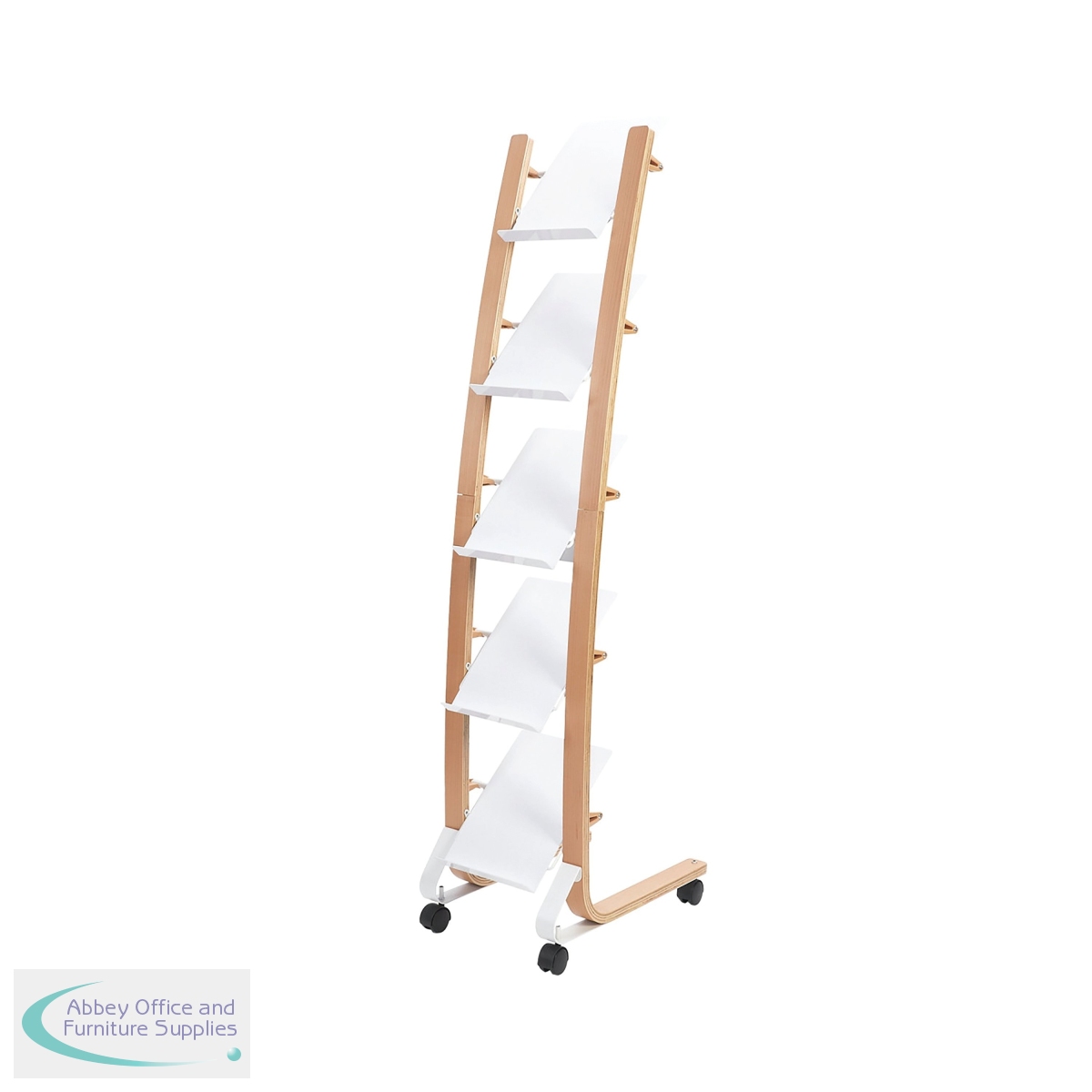 ALB01782 - Alba Mobile Narrow Literature Display 5 Compartments A4 Natural Frame White Compartments DD5PMW BC
