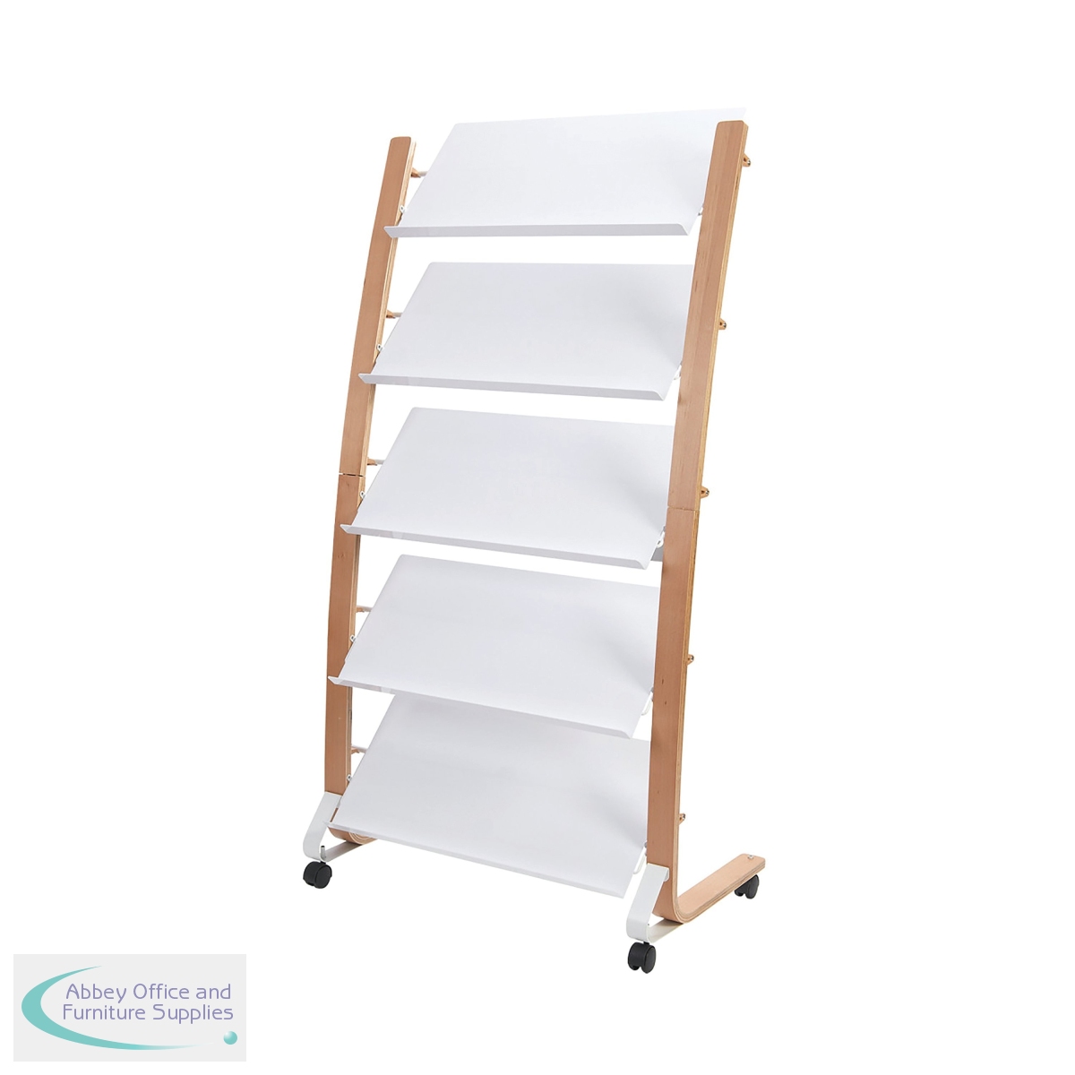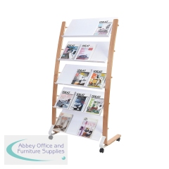 ALB01783 - Alba Mobile Wide Literature Display 5x3 Compartments A4 Natural Frame White Compartments DD5GMW BC